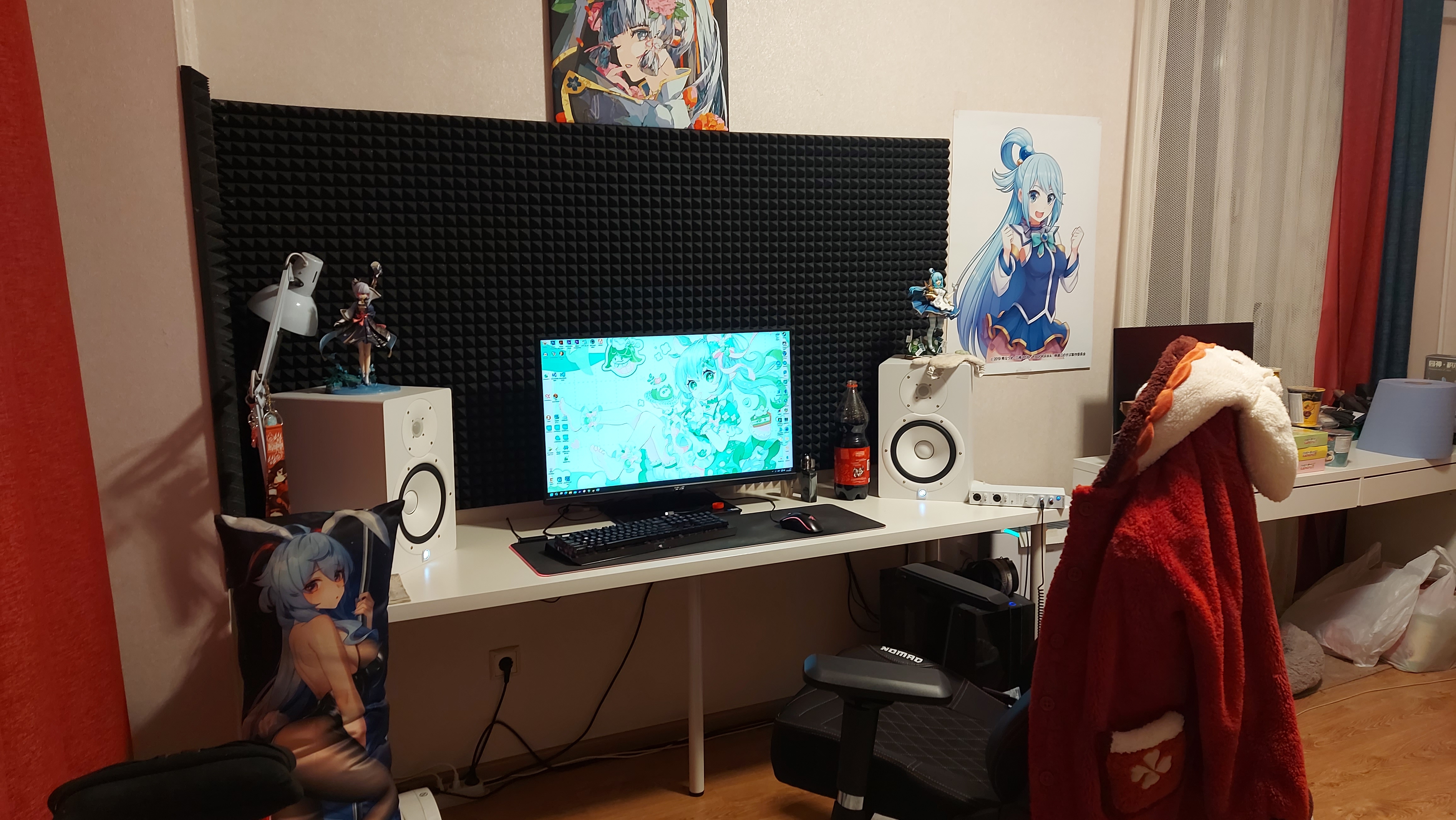 >>6127118 > Стол со столешницей 80х150. На столе коврик Xiaomi MIIW, на нём клавиатура A4Tech FX60H и Крысюань Logitech G502. За ковриком основной монитор Redmi G Pro 27", справа от него вплотную второй монитор Asus VG259Q. По сторонам от основного монитора две колонки от системы Sven SPS-820, которые подключены к китайскому усилку на базе схемы TA-2024 который тюльпаном подключен к звуковухе Creative Surround X-Fi 5.1 Pro. Рядом с усилком - вторая звуковуха Fiio K5 Pro, к ней подключены наушники Fiio FT1 которые рядом на подставке. Рядом на столе телефон Oneplus 12 (старшая версия вжушкофона), а рядом с ним - кейс с наушниками Oneplus Buds 3. > Над основным монитором висит на стене телевизор LG C4 42" который полгода использовался как монитор, но несмотря на все плюсы оледа Новогоднее настроение за выгорание победила, поэтому изредка включается для кинца. > Сбоку от стола две пекарни. Первая - основная, вторая - NAS-файлопомойка, которая работает от ИБП Ippon BlackPower 600 Pro, который подключен к 2кВт-стабилизатору. Перед столом кресло Метта ErgoLife Comfort.