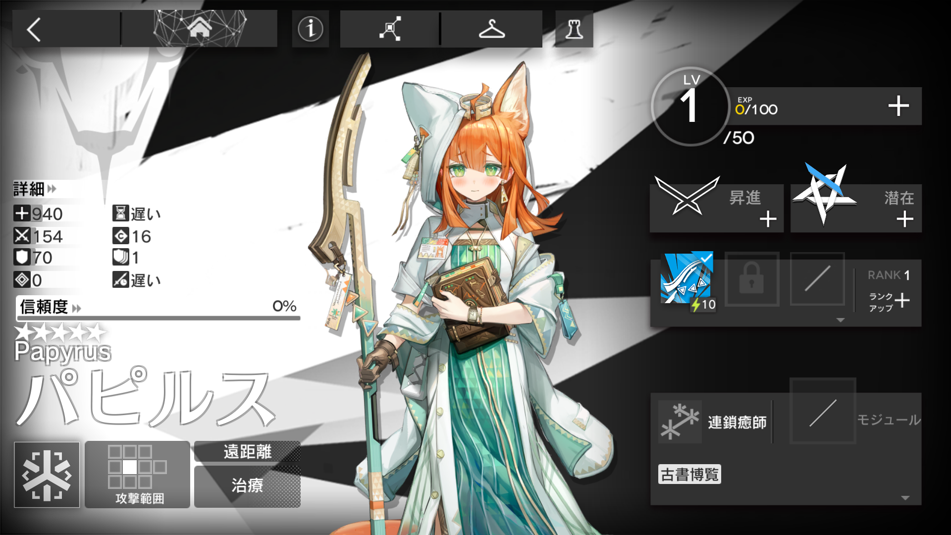 Trait: Deals Arts damage; When skill is active, attacks instead restore the HP of allies (heal amount is equal to 75% of ATK)
