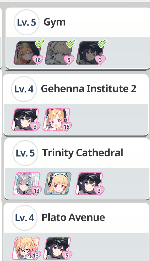 Господа, составьте 3 отряда по 6 каждого цвета, с топом (крем де ля крем, как говорят) студенток соответствующего цвета, чтобы новичку знать, кого качать. У меня закончилась экспа и теперь не могу позволить качать кого хочешь по вайфу-фактору. Канна вообще не дамажит (хуже Карин).