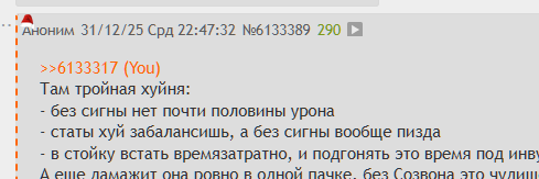 >>6133317 Там тройная хуйня: - без сигны нет почти половины урона - статы хуй забалансишь, а без сигны вообще пизда - в стойку встать времязатратно, и подгонять это время под инвули боссов ну такое себе А еще дамажит она ровно в одной пачке, без Созвона это чудище тупо не работает, потому что стойку заряжать ДОЛГО