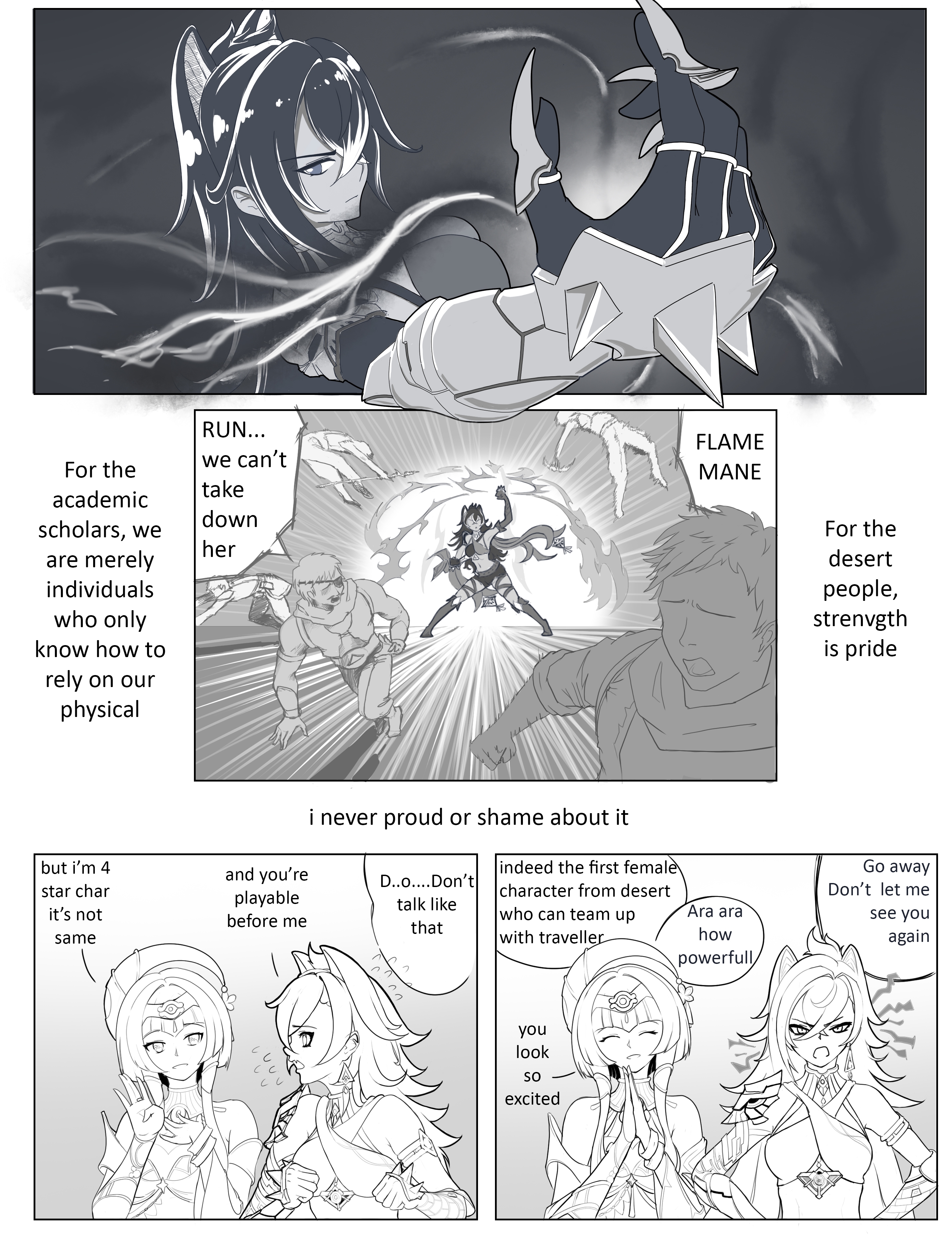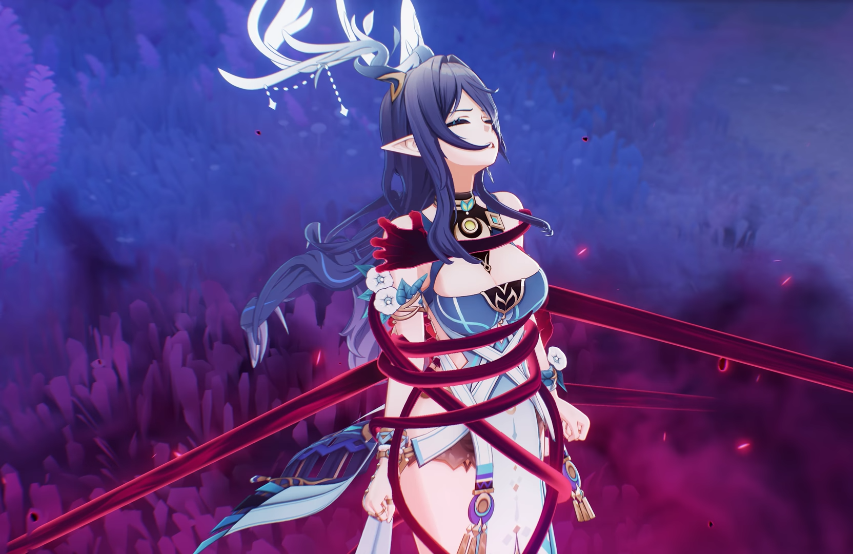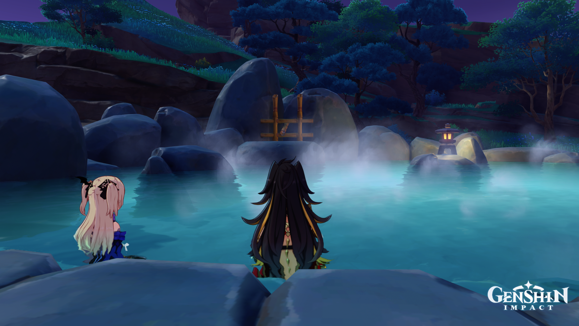 Здесь как-то в особой форме ощущаешь разницу персонажей Натлана от остальной игры. Мол, на пик этот обычно приходилось с потом и кровью (виртуальными) залезать, а тут прямо что-то с обложки метал-группы.