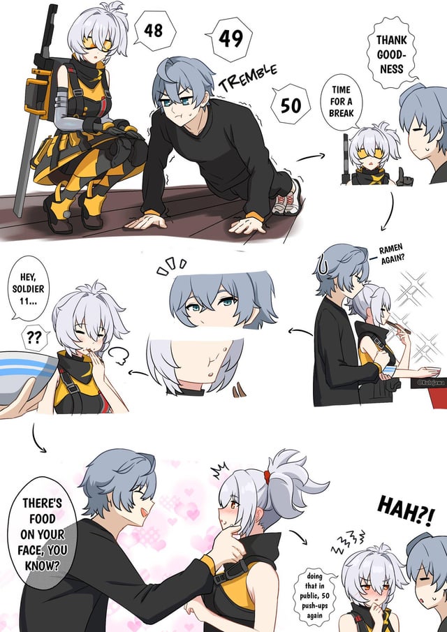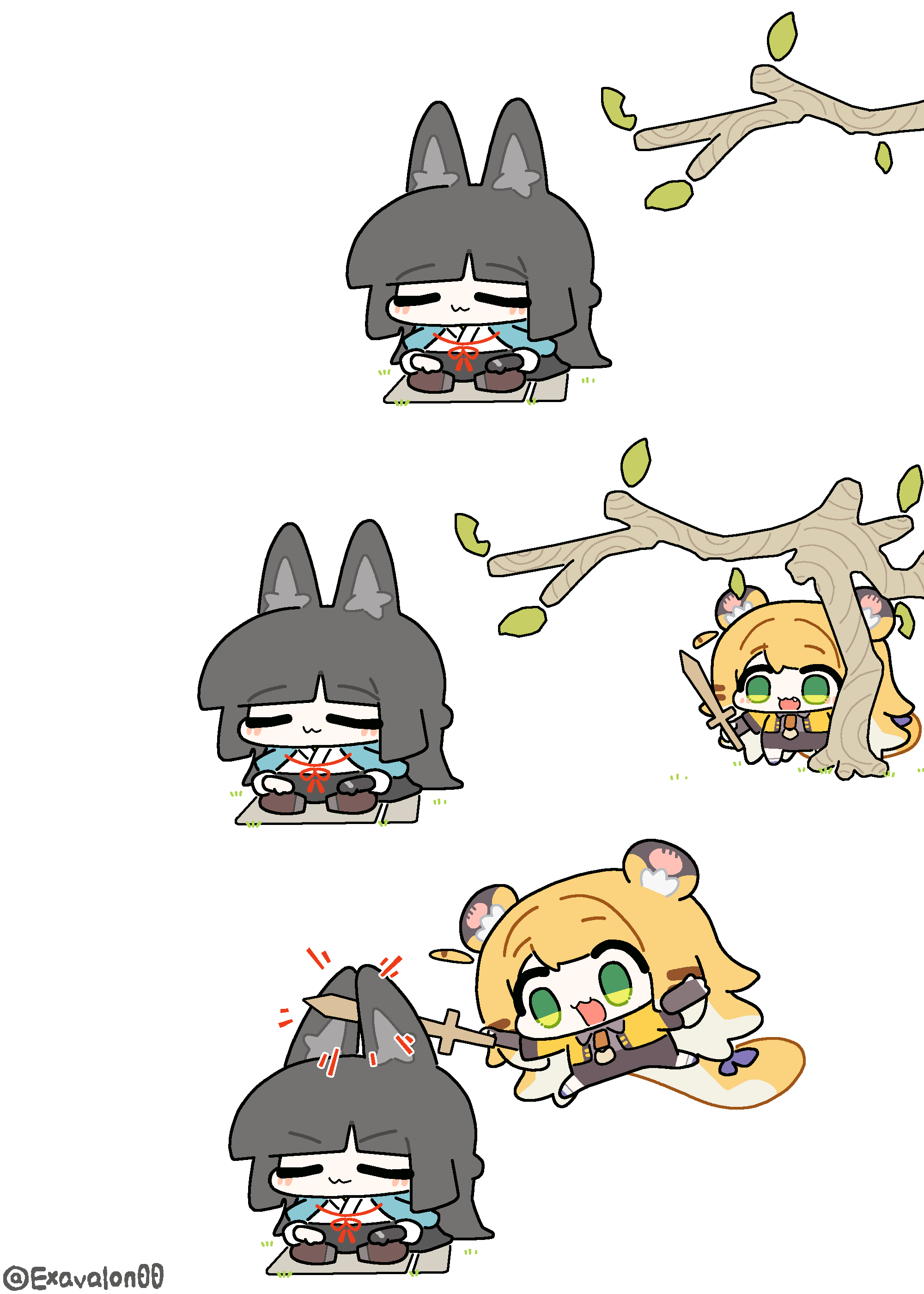 «Нужно сосредоточить энергию в точке даньтянь, слегка расставить ноги, сложить руки перед грудью, как будто держишь шарик, затем резко раскрыть запястья и сказать громко и ясно: "Пусть ко мне устремится удача... Да будет так!"» «Ого! "Большое счастье"! Младшая ученица, твоя техника гадания и правда работает! Я тоже так хочу!» «Белль... ты ведь сама это придумала, да?..»