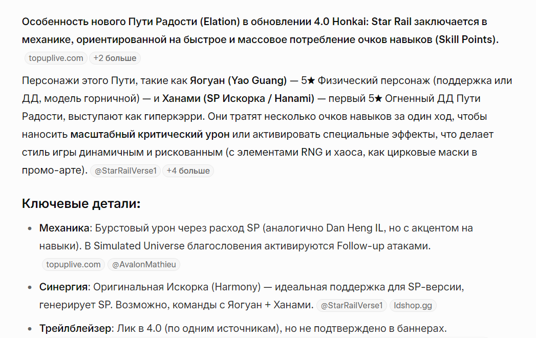 >>6138624 Авторы явно вдохновлялись фресками пещер Могао в Дуньхуане. Ленты (Pibai): Длинные, парящие ленты, которые вьются вокруг персонажа, не подчиняясь гравитации — это атрибут Фэйтянь (летящих небесных дев). Это визуальный код, обозначающий божественность, легкость и принадлежность к высшему миру.
