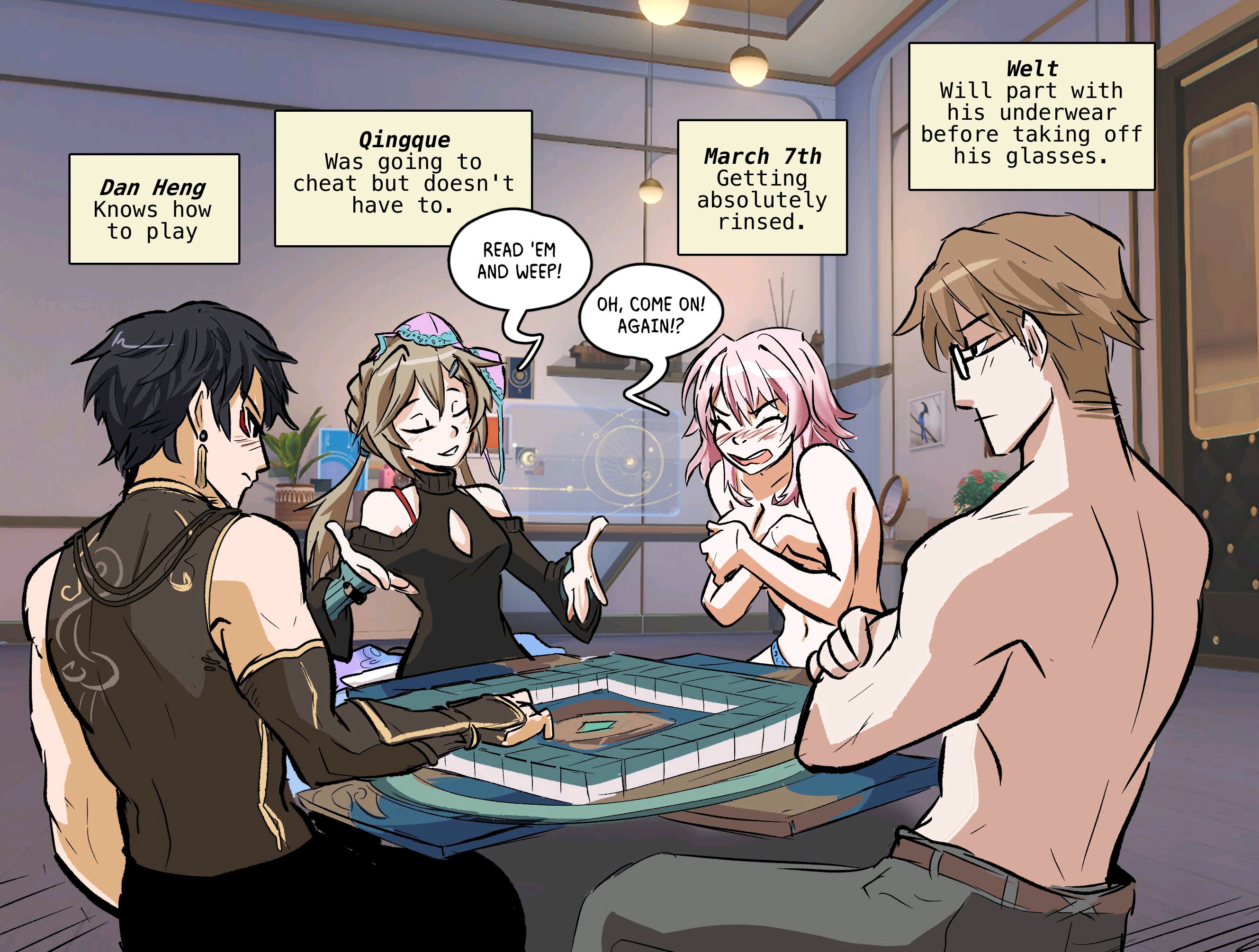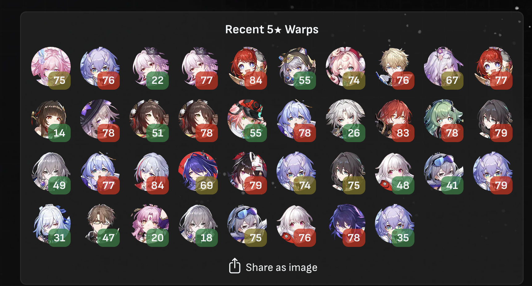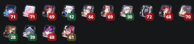 Other than the characters mentioned above, we have: Possibly A Harmony Char (unless they just had to do a ton of testing for Yaoguang, more than we'd usually expect) 2 Hunt Chars A Abundance Char 1-3 Erudition Chars 1-3 Destruction Chars