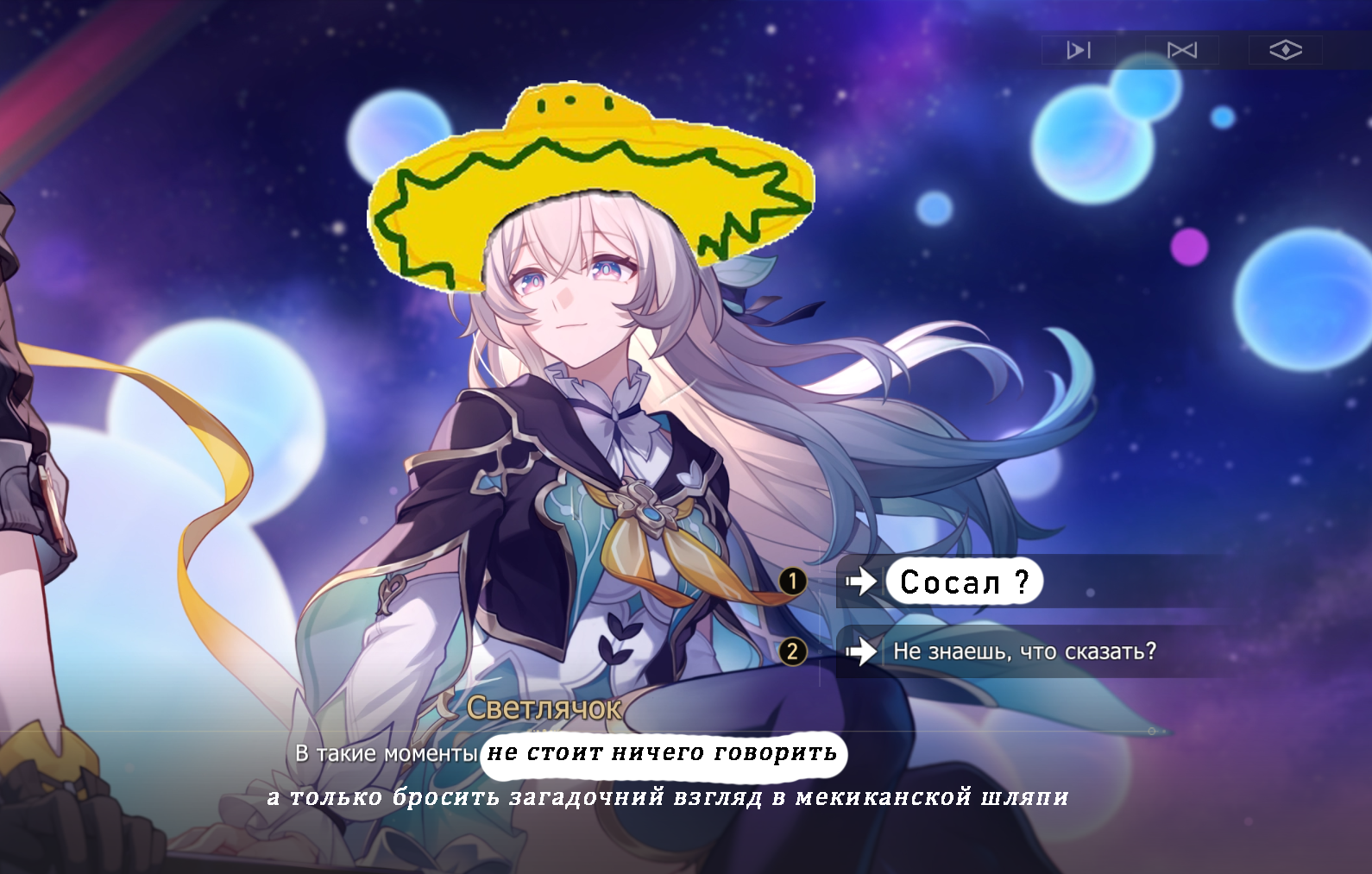 Ничё, попразднуйшь. У нас Светлячок навсегда. Рыночек порешал. Ты БУДЕШЬ проходить сюжетку Светлячка. Ты БУДЕШЬ смотреть как на нее релизят скины Ты БУДЕШЬ читать Новый годноуты и видеть ее баффы Ты БУДЕШЬ тратить своё время на Светлячка. У тебя не будет НИЧЕГО, кроме Светлячка и ты БУДЕШЬ счастлив