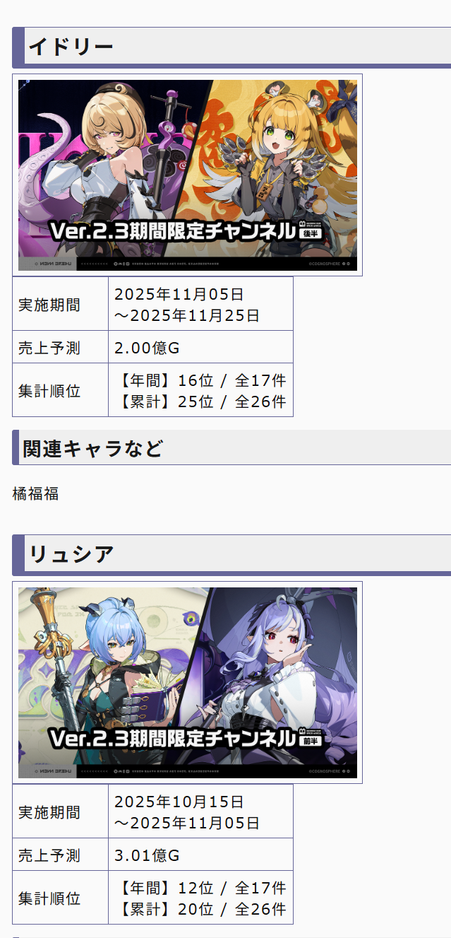 Как по мне Писевор вполне нормальные окна для накоплений создает: по разным категориям чемпиков продает. 2.6-2.7 Новый годи для любителей юшек (забудем про Юно) были накопительными скорее. 2.8 был испытанием на ваше вайфу-энджоерство, Чиса пока что персонаж без задач. В 3.0-3.1 первой половине выдают три юшковых девочки и потом безюшковая диета: Люк, бимбоунитаз Люцилла, звёздочка Сигрика, возможно че-то там будет у глацио чемпика, но я хз. Плюс два коллабных унитаза. Потом снова юшки.
