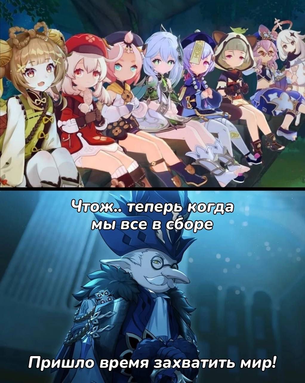 Алсо, вот смешно будет, если нашего табибу тоже в конце хотят расэльфить во благо Тейвата и все архонты, особенно Венти и Дед в этом участвуют. И только Бездно Светка знает правду и делает все, что бы остановить этих уебанов и спасти братика.