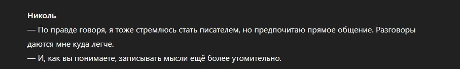 Сейчас подушню немного, но мне кажется, что это не совсем верно так утверждать. В том плане, что не стоит забывать, что у нас как бы игра идёт, а не кинопросмотр исторических фрагментов реальной истории некого мира. Игра, плод фантазии китайца, при чём в онгоинге. И глупо думать, что Дед Мороз не обращает внимания на комьюнити. Как минимум он не гнушается пиздить складные теории, которые шизовые фанаты понапридумывали. И это правильно, так и должно быть в столь массовом творческом продукте. Ну а про НЁХ-Колумбину, как и про прочие теории, была фантазия у фантаов задолго до её игрового появления... И тут как бы претензии людей имеют силу. Ну да, они придумали, но Дед Мороз ничего не стоило эти придумки осуществить в жизни.