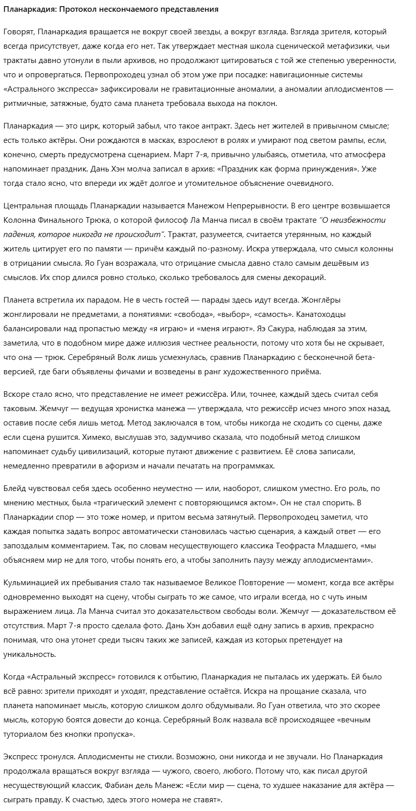 Амфореус. Опять какая-то закрытая экосистема, опять "воспоминания", опять всё зыбкое и ненастоящее. Очередная симуляция античности без реального импакта на галактику. Про приколы с пещерой и миллиарды символов ненужного текста я уже молчу.