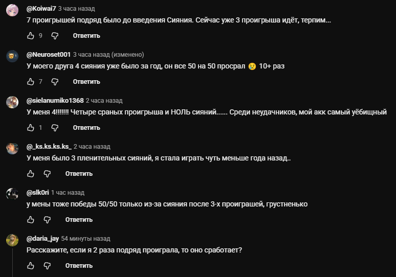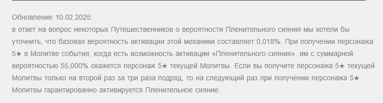 >>6168404 > То есть не знаю, пусть будет на 4 проигрыше 5% шанс таки получить ивентовую легу вместо очередного дилюка Нет, там 100% шанс активировать сияние, которое превратит проигрыш в выигрыш.