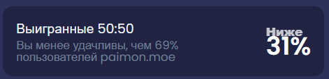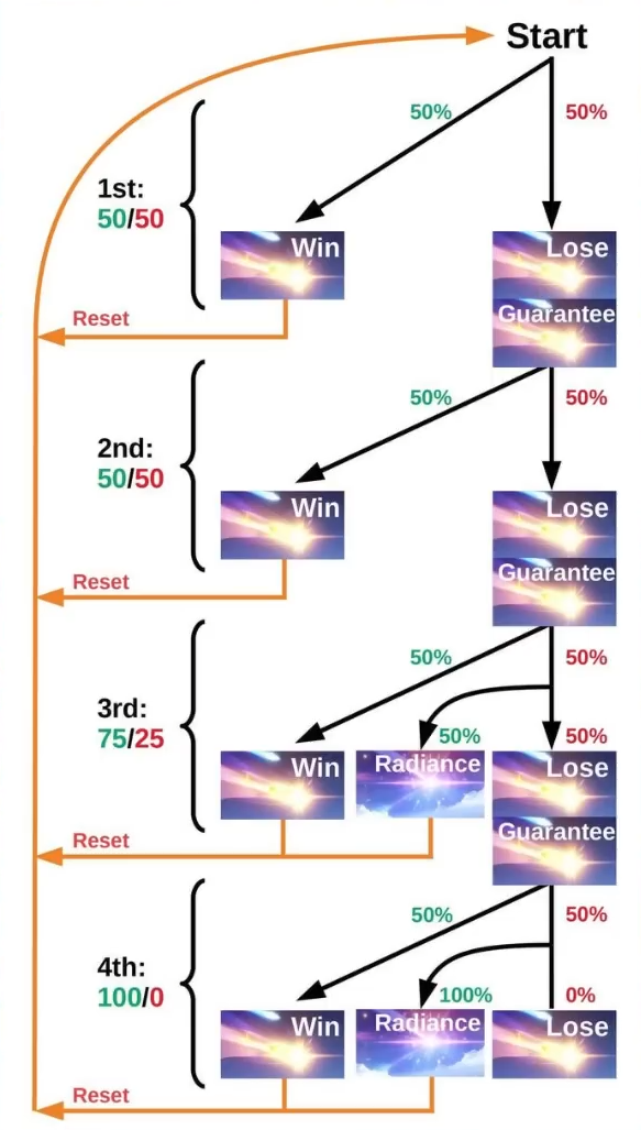 >>6168404 >Этот божественный шанс насколько помню 5% что ли Неправильно помнишь, там каждый 4 проигрыш становится выигрышем. Всё. Совокупный шанс на легу становится 55%