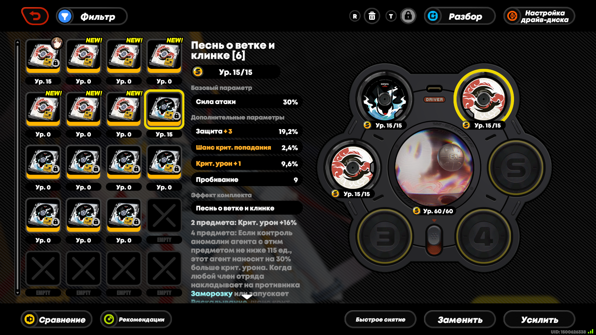Уж сколько дисков из Миябного сета на других слотах запоролись. Осталось немного дисков на 6-ой. Первый пошел, нах, +3 защита сразу. Многообещающе. Заипусь одевать собачку. А еще надо ее личный сет выфармливать
