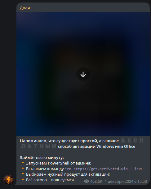 Займёт всего минуту: 🟠Запускаем PowerShell от админа; 🟠Вставляем команду irm https://get.activated.win | iex; 🟠Выбираем нужный продукт для активации; 🟠Всё готово – пользуемся.