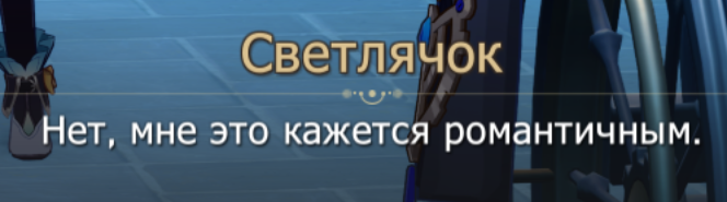 Вот например. Её настолько бездарно вставили в Пенаконию, что единственное, что Шаджи придумал для реабилитации, эт ретконом впихнуть интерес к Распространению через Гофера, интерес которого только в том и лежал, что б использовать путь для создания хаоса. Потом, я ещё в старом 2.х ныл, что можно было сделать какую-то закадровую историю для ГГ и неё, на что встречал: ряяя паймона, свитлитёк лучшая деватька!1 По итогу бездарь вставил фрагмент, что что-то якобы было, какое-то обещание, которое мы нихуя не помним. Но вот на этом всё. Жри и принимай как данность, проникайся нахуй чувствами. Без даже какой бы то ни было ясности. Бля.