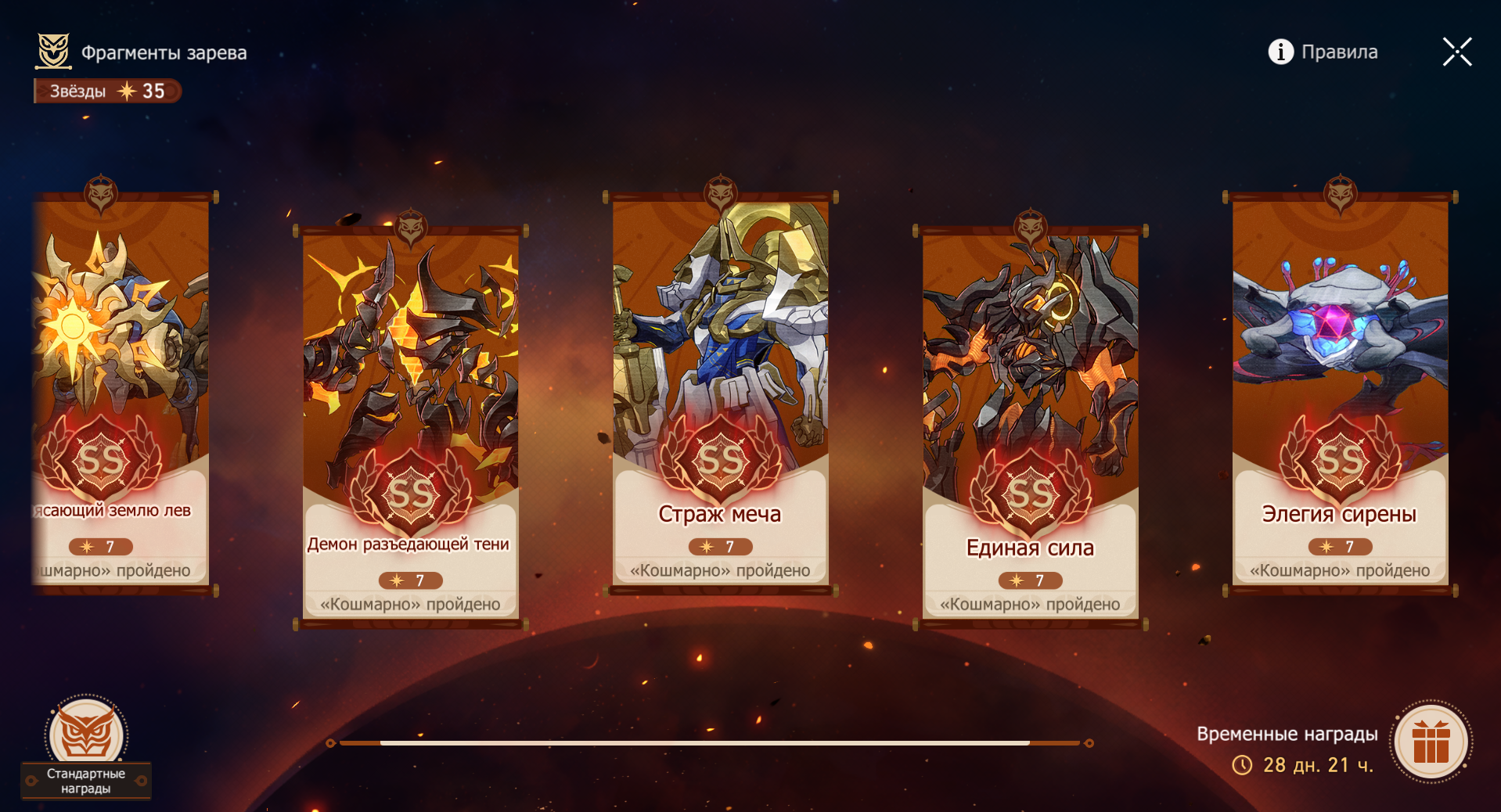 >>6189626 С чего там гореть? Временные награды только за первые две сложности, на которые персов дают. За третью награды никуда не денутся. Можно будет забрать, когда свои персы посильнее будут.