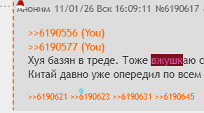>>6190556 >>6190577 Хуя базян в треде. Тоже вжушкаю с итт скуфов застрявших нулевых которые до сих пор угорают по отсталой Японии которую Китай давно уже опередил по всем категориям.