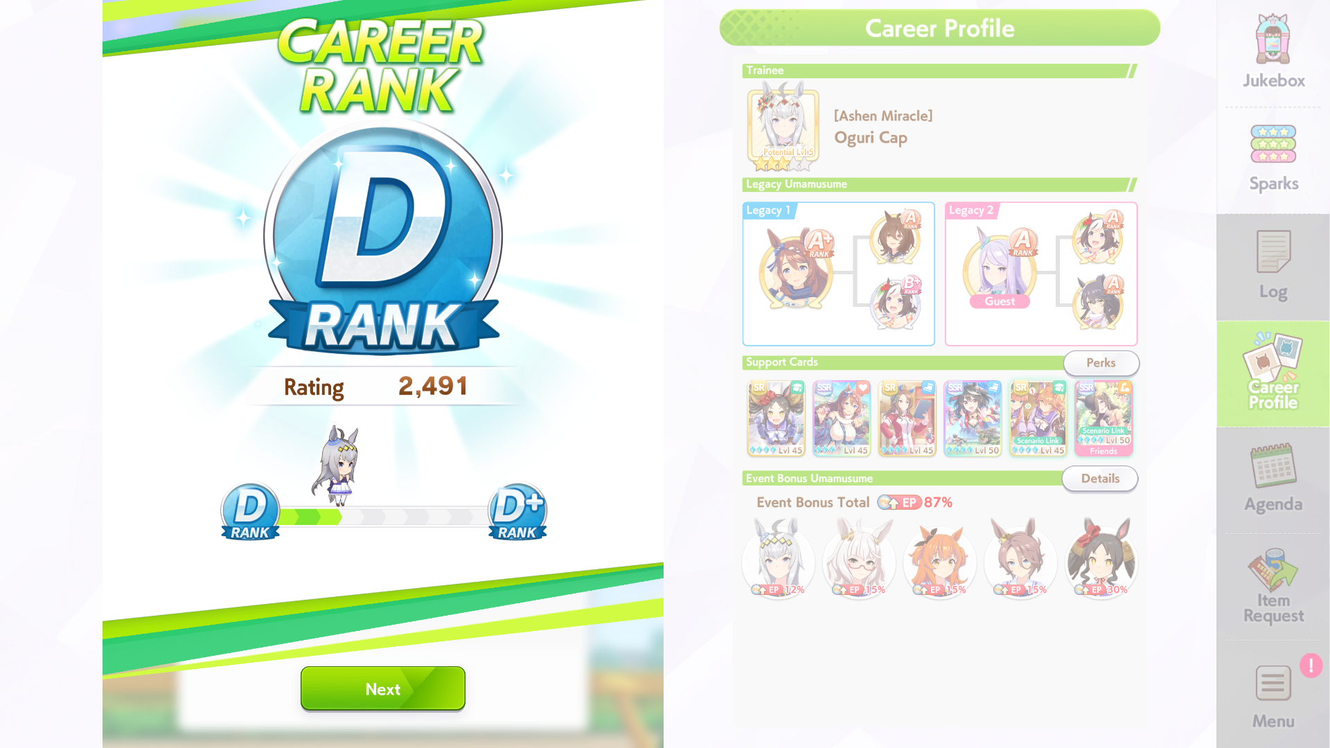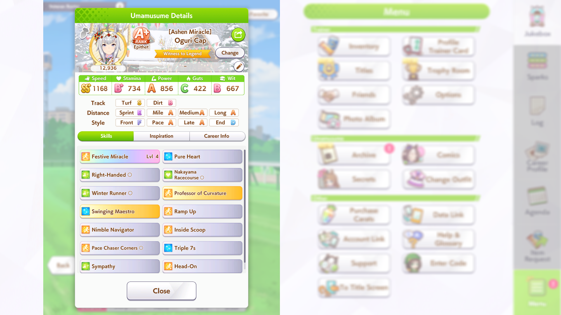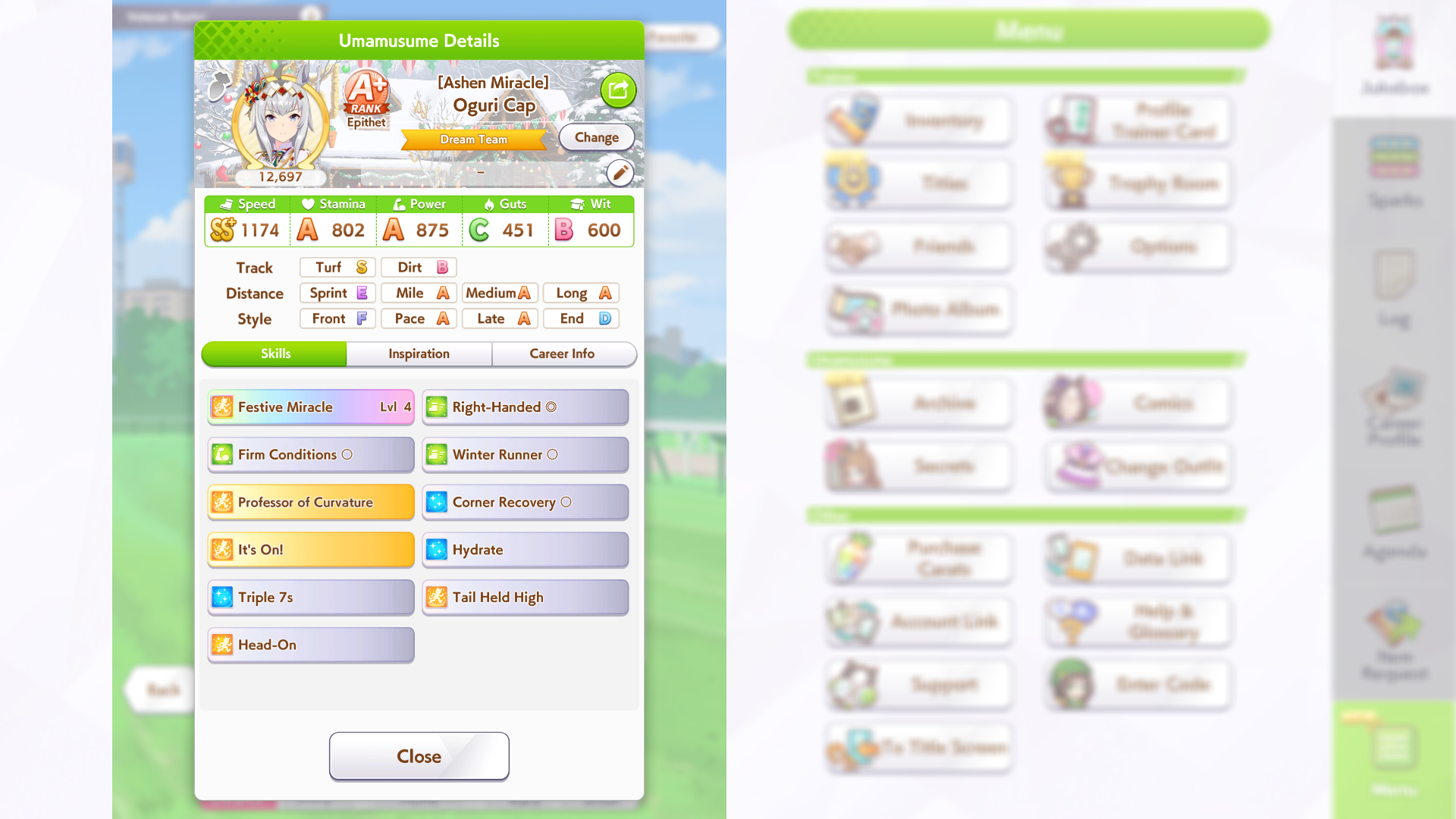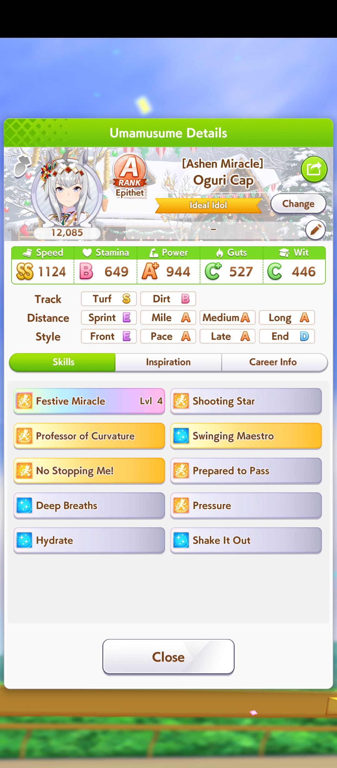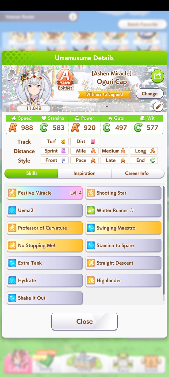 Я играл 4 последних дня только Огури. 12 ранов. Всегда получал секретную награду. Иногда она может проебать Хеншин, но там 2-4 место, это поебать, так как тебе надо 3к фанатов, а с них набивается. Пару раз второе место было на осенней миле перед Арима кинен.