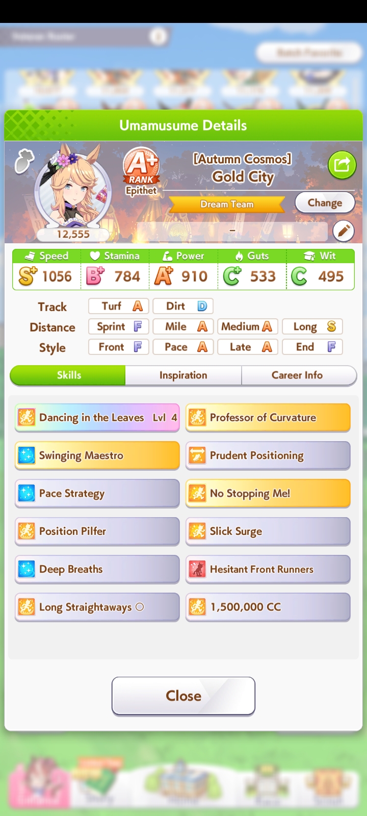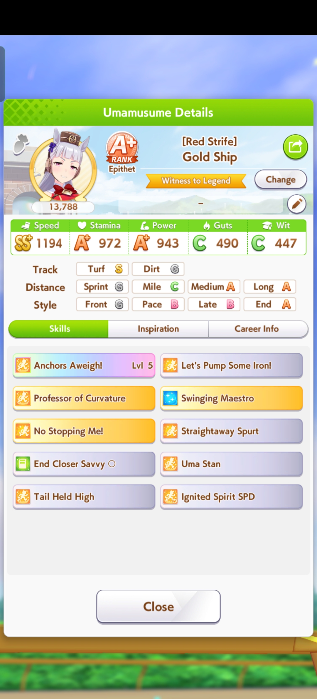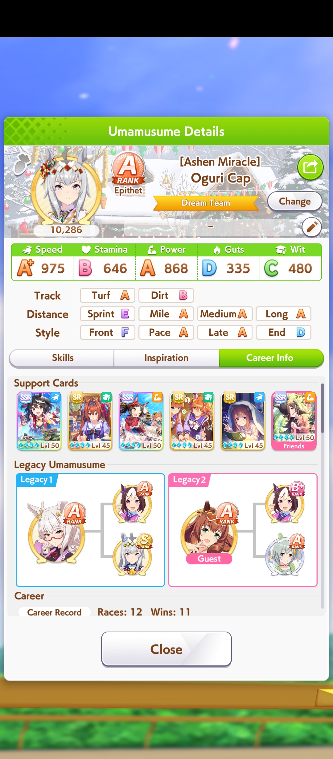 >>6195711 >>6195683 Вот что у меня. В 90% прихожу к финалу Аохары с A арнгом команды и треугольниками, ординарными кружками к "Зениту". Про S на дистанцию или хотя бы Turf я вообще молчу. Были только такие как на пиках с 2 по 4. В общем всё совсем печально и походу даже в B группе ожидается посос, на А я даже не мечу с такими тренями