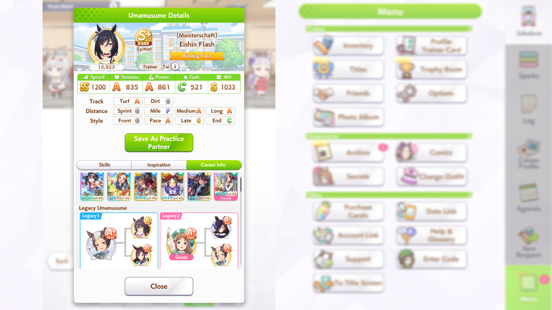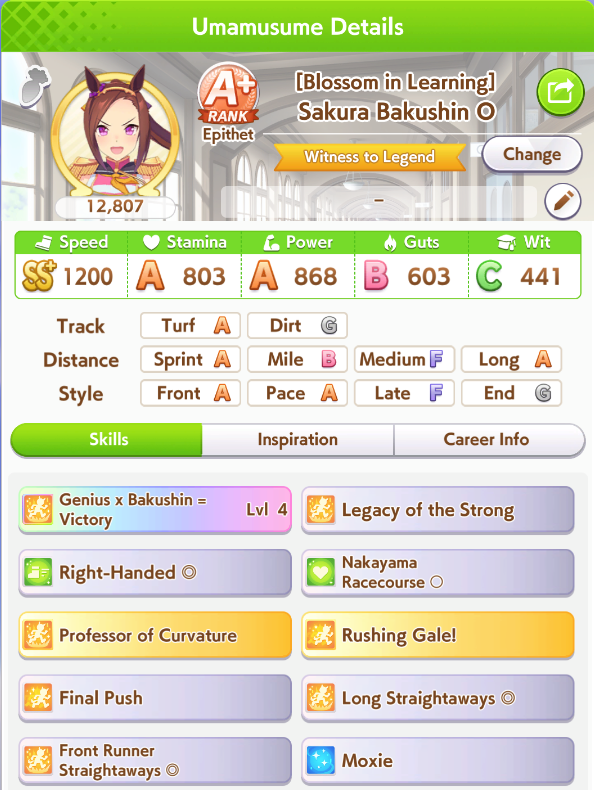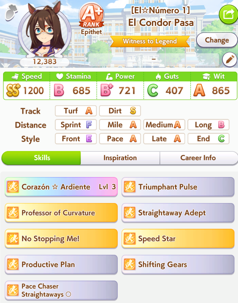 >>6181805 Ну я вот такую пивную сделал с первой попытки. Ничего вроде особо не лузала кроме одной гонки на грунте, куда я её с Б-шкой отправил, думал статами задавит, не задавила. Статов действительно по меньше набирает, но в целом не такая уж проблема, перекрывается по ходу карьеры скилами на гонки. Тут надо учитывать что она фактически всю карьеру без ульты бегает поэтому и лузает, просто надо поправку на это делать. Поэтому любителям бегать по китовому на одних статах она и не очень подходит, а вот пиву вроде меня в самый раз. Это при том что что лузнула три трени за карьеру и самое обидное спид на +57 с 23% вероятностью провала еще и с dont overdo, пиздец короче, а так бы может еще и неплохая вышла. Я всё-равно не знаю как в этой игре спид качать нормально, даже с тремя спид картами выше 1к обычно не набирается на любой уме.