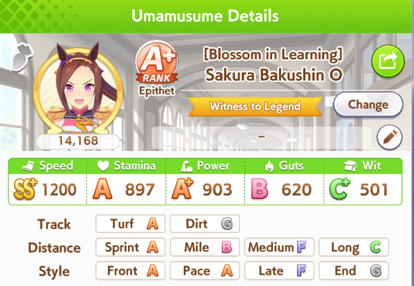 Правда бегал в основном мили в кубке не смотря на Ски, стамины ей всё же чистой малова-то. Но всё выиграли без проблем только один раз вроде лузнула. Вообщем, не зажимать ей стамину и гатс в самом начале и будет всё плюс минус норм. Ты идёшь онли спид-вит как на бакушине, конечно она будет лузать без ульты то. Попробуй с Урарой поиграть или что там у тебя на Гатся есть, может легче должно пойти.