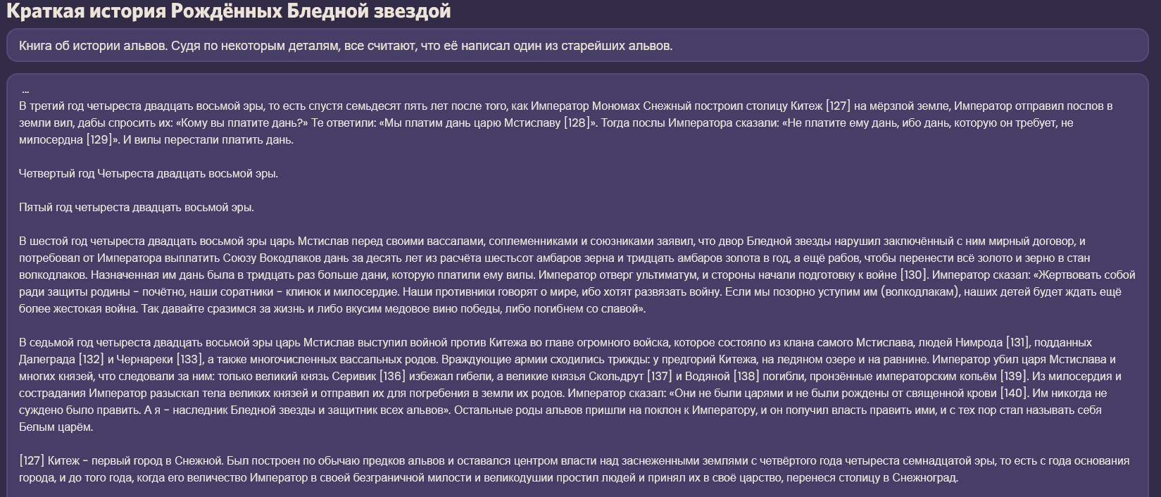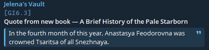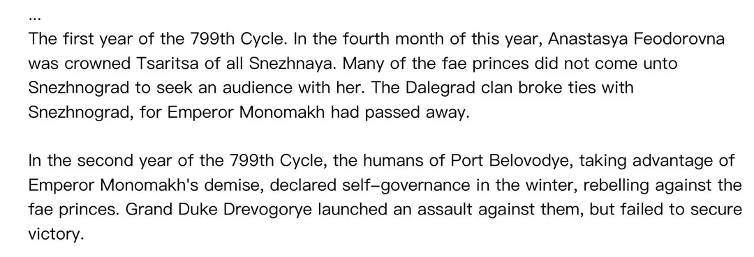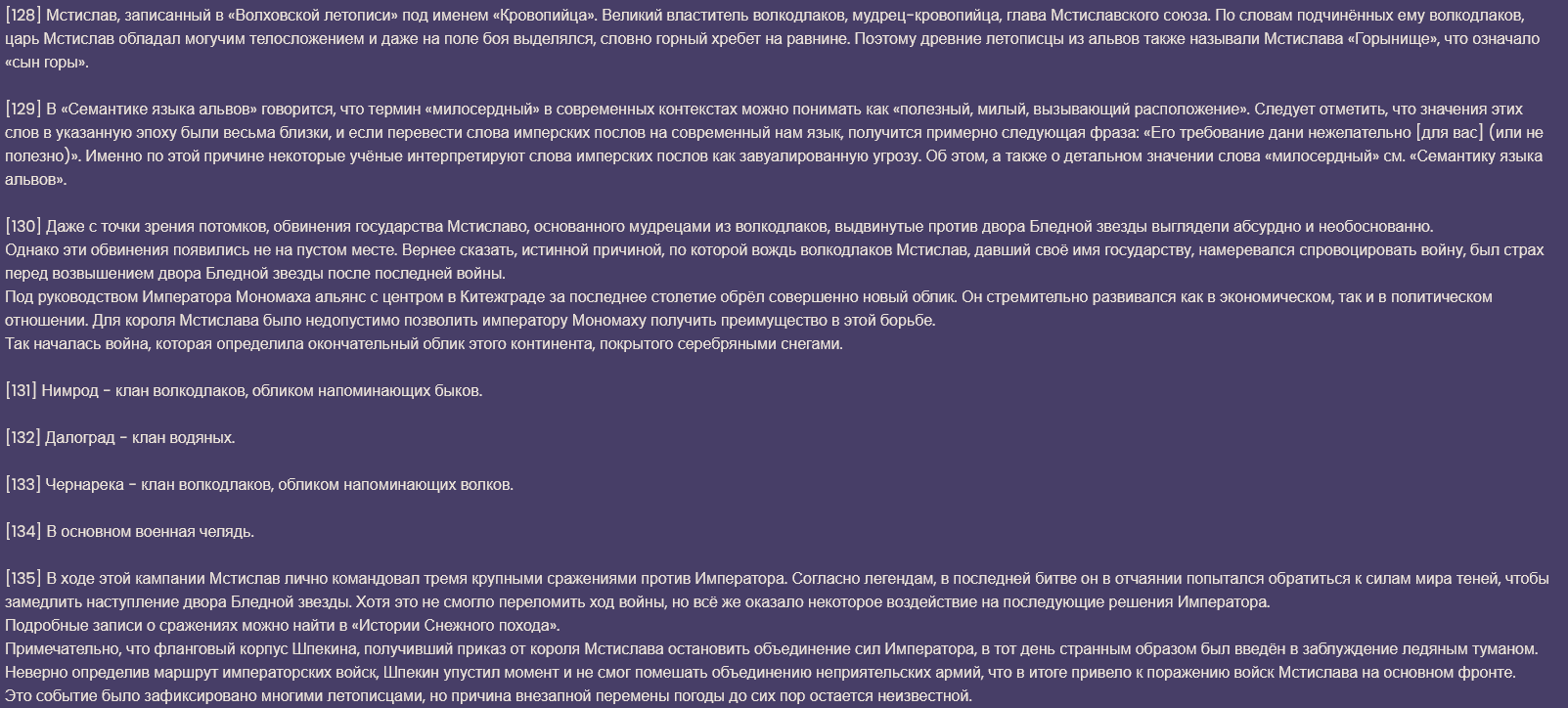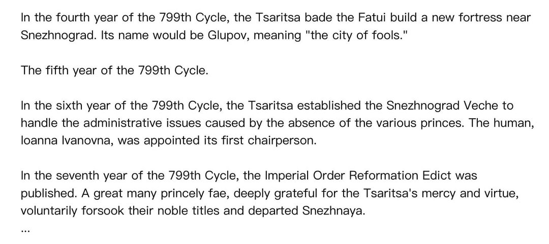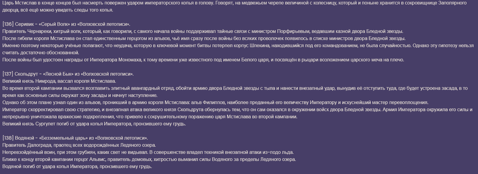>>6193941 Это не совсем спойлеры, а книжка внутриигровая, так что можешь читать смело. Кстати, в треде часто интересовались кого из славянской мифологии запихнут в Снежную, ну вот уже есть упомянутые вурдалаки, водяные и домовые.