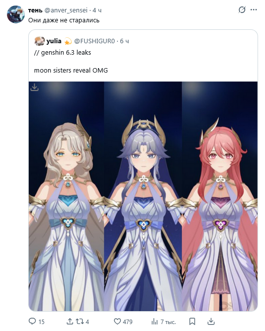 Напоминаю кстати, как нам в Сумеру тизернули, что топ-3 Предвестников по силы сравнимы с богами. И теперь мы проебали весь топ-3 меньше чем за 1 год. И кто-то ещё не верит, что направление игры полностью сменилось на середине Сумеру и пошла волна переписываний в угоду сиюминутному хайпу и новым приоритетам. Ведьм и Грешников как образования а не отдельных нейтральных перчиков как раз тогда начали вводить в лор. Видимо и дали отмашку, что от Фатуи можно избавляться. Но не от девочек, девочек мы крутим, Синьора Инцидент не повторится.