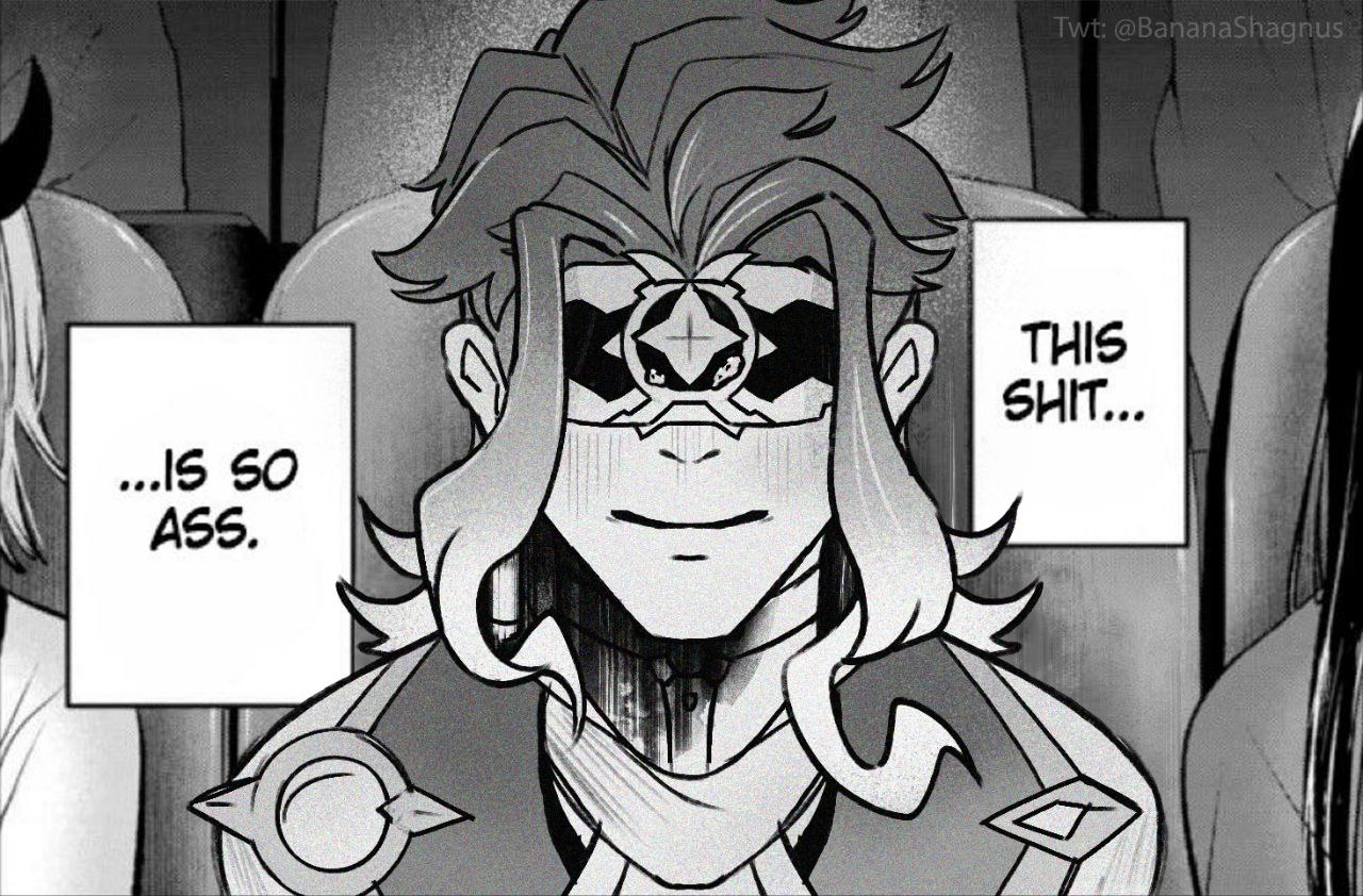 Дочитал мейн квесты из предзагрузки, ну такое. Вроде и интересно, вроде и лёгкий привкус говна во рту в глазах. С новых сторон Дотторе не раскрыли, мотивация яснее не стала, просто накручивание "злое зло злодеит, ну вы посмотрите как он ващще берега попутал!", покуда сам Док заботливо ждал, пока все подготовятся и придут бить ему морду.