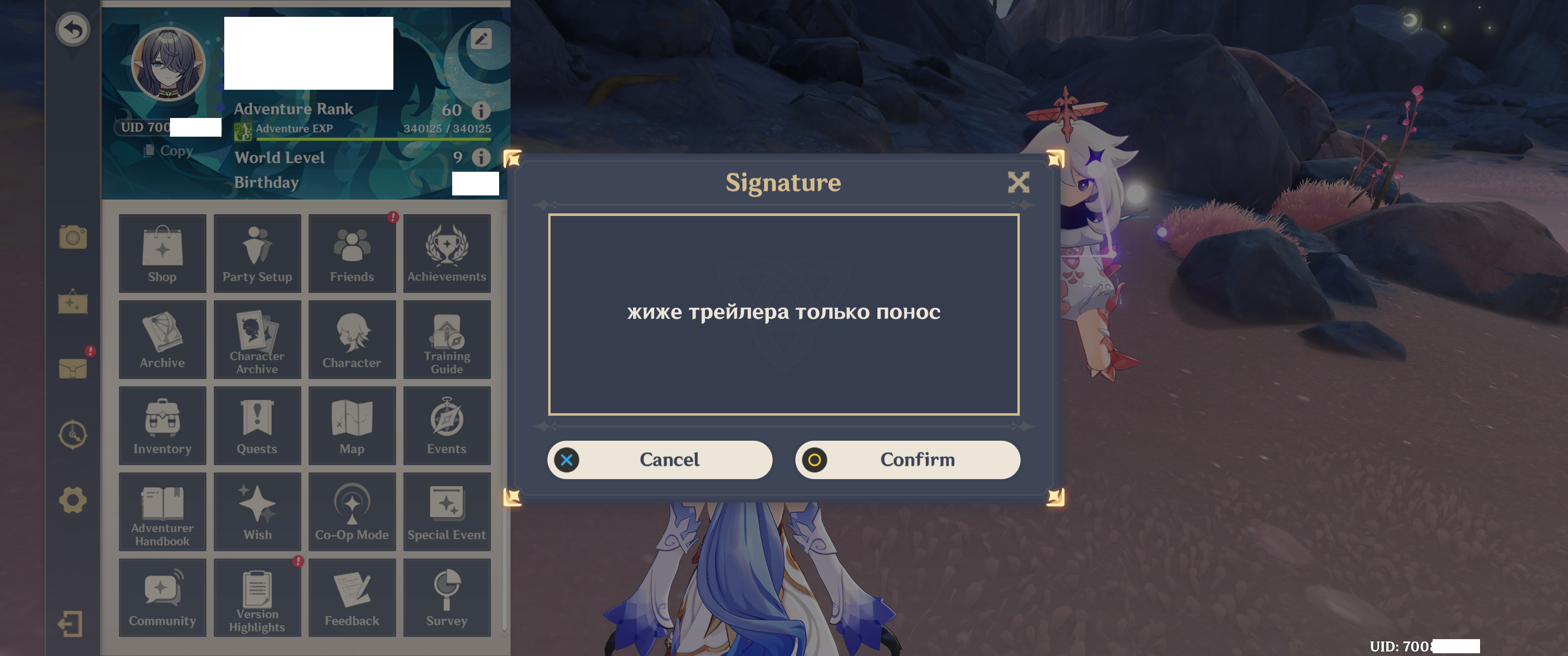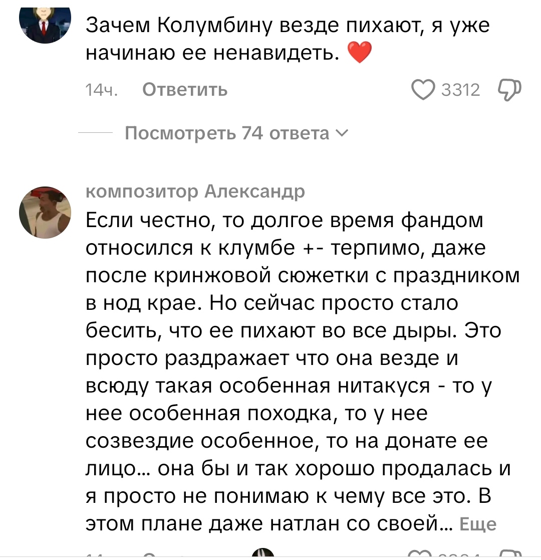 Давайте ещё вместо Паймон в меню Колумбину свою ебаную вставьте, на аватарку её поставьте, забаньте каждый аккаунт, на котором её не будет, делайте, нахуй, а то чего это так мало пушинга, слабо продвигаете, гандоны.