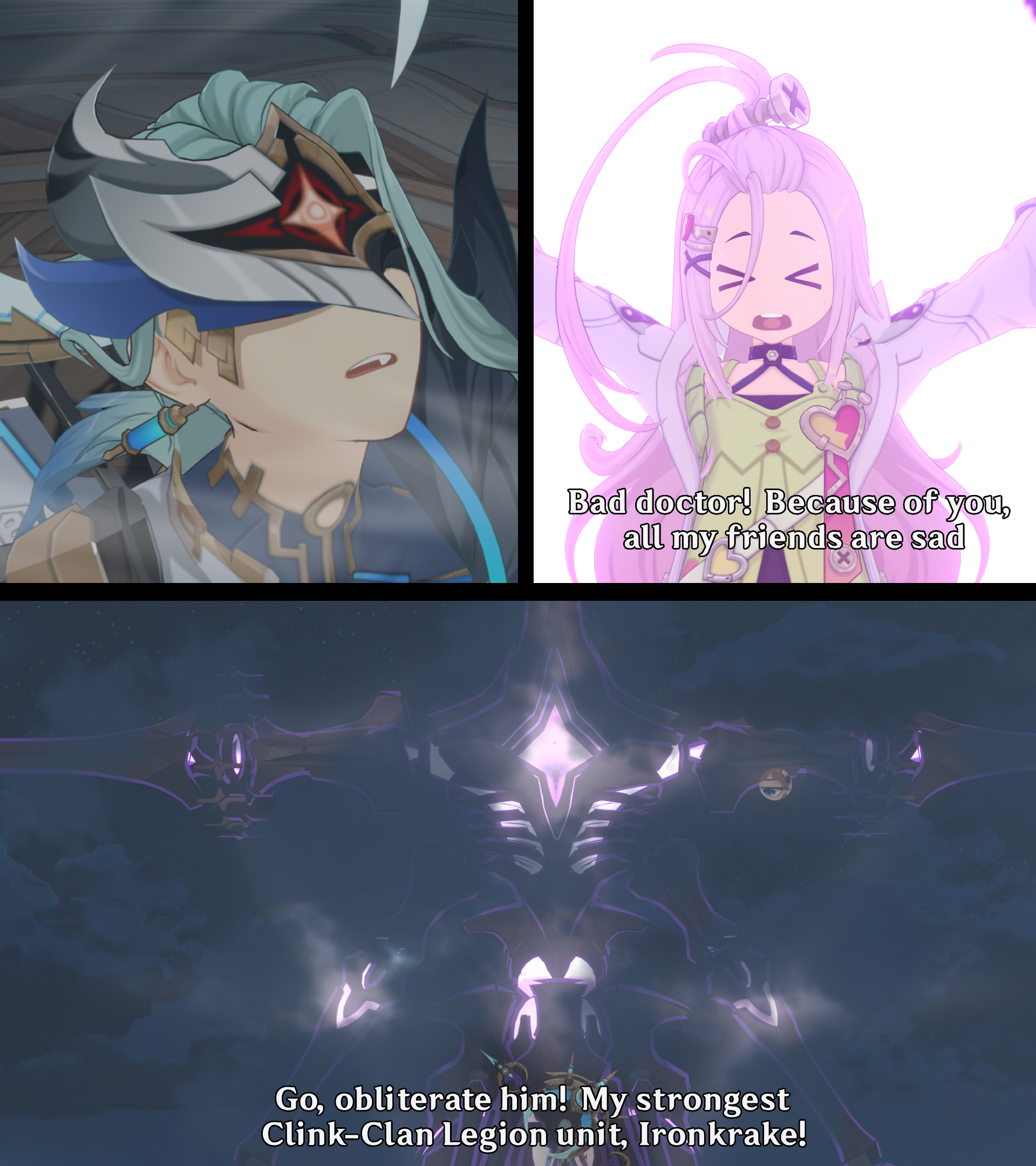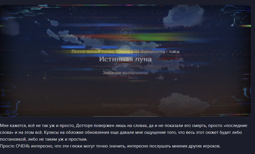 Пиздец они намешали несвязанной хуйни.. Алогритмы, перенесение тела, души, куувяки, приближение луны.. Как обычно самые важные моменты стори объяснены хуевее всего и не склеиваются. Почему Базторре в итоге не смог просто закрыть небо и оказался слабее.. Почему 3 типа в силах вообще луну притащить и как они смогли понять что Дотторе вообще откроет небо.. Почему Дейнслейву вообще похую что с Тейватом, где все Архонты и где Ронова с подружками.. Нахуя так усложнять все.