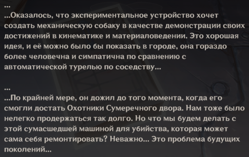 Хуй знает что можно добавить к этому твоему посту. Только что дослушал подкаст Муррчика и Ройта, где они обсуждали (поверхностно) лор Гипербореи, отсылки Белого царя на Ивана Грозного, происхождение всех богов от Фанета и возможный план Фанета удобрить Тейват их останками. Единственное, что для себя вынес - это что каждый видит в лоре Геншина то, что хочет. Кто-то ноет про несостыковки в сюжетке, а кто-то наоборот, из трёх строчек описания артефакта выводит талмуд. Ни те, ни другие свою правоту доказать не смогут: лор настолько жидкий, что его считай что нет. Наверное и после основной сюжетки будет то же самое: кто-то взвоет "и ради этого корячились предвестники?", а кто-то "вввау, да именно об этом же была книга "история лобковой вши" из 1.4!".