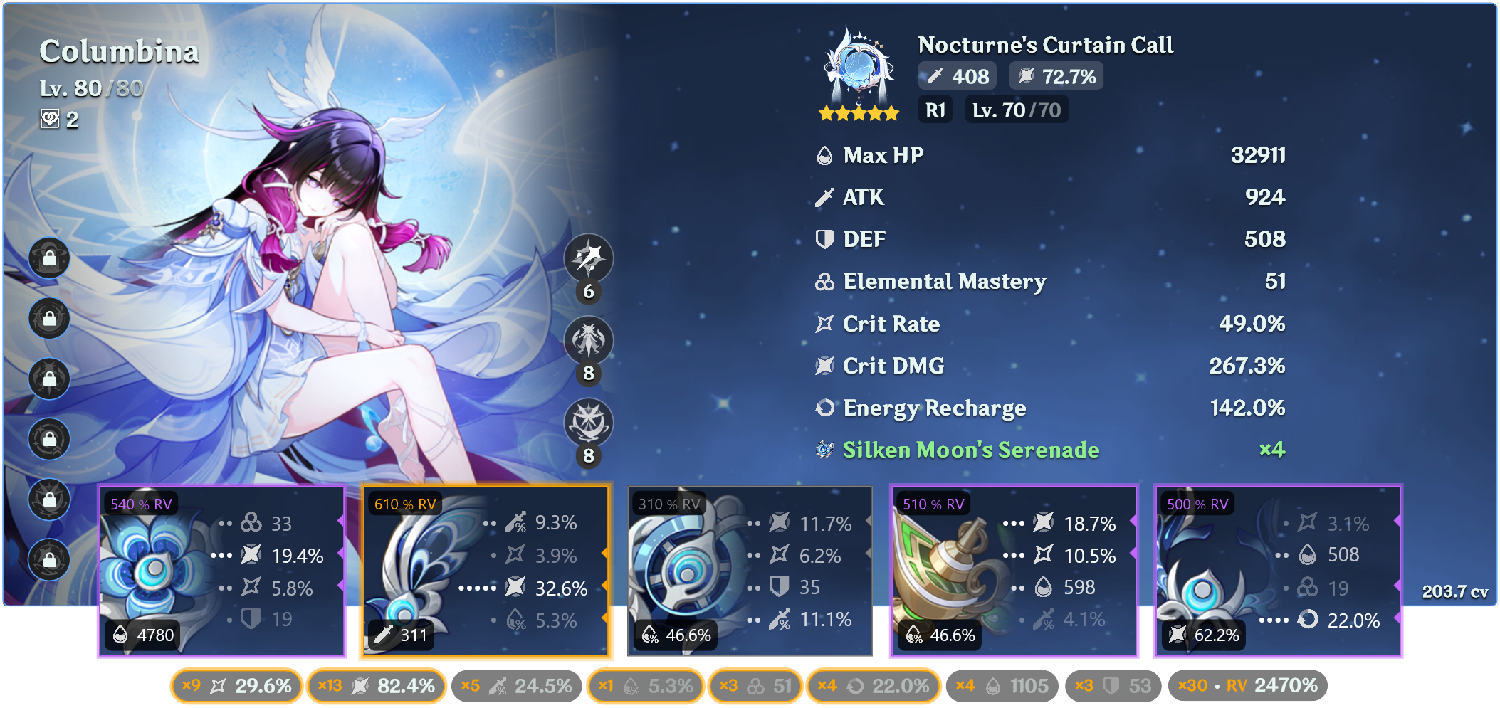 Взял Колумбину для безлаумной Нефер - ровно те же 70к дпс что и с рандомным электро вместо Колумбины. Буквально вся её утилити в дендролунопуке - это возможность Лауме сливать лишнюю росу, для Нефер по отдельности нихуя не дает, только дуо, то есть уже трио нового бесполезного где либо ещё говна необходимого, просто чтобы была возможность поиграть чариком. В обоих случаях хуже даже с0р0 Клоринды (75к)