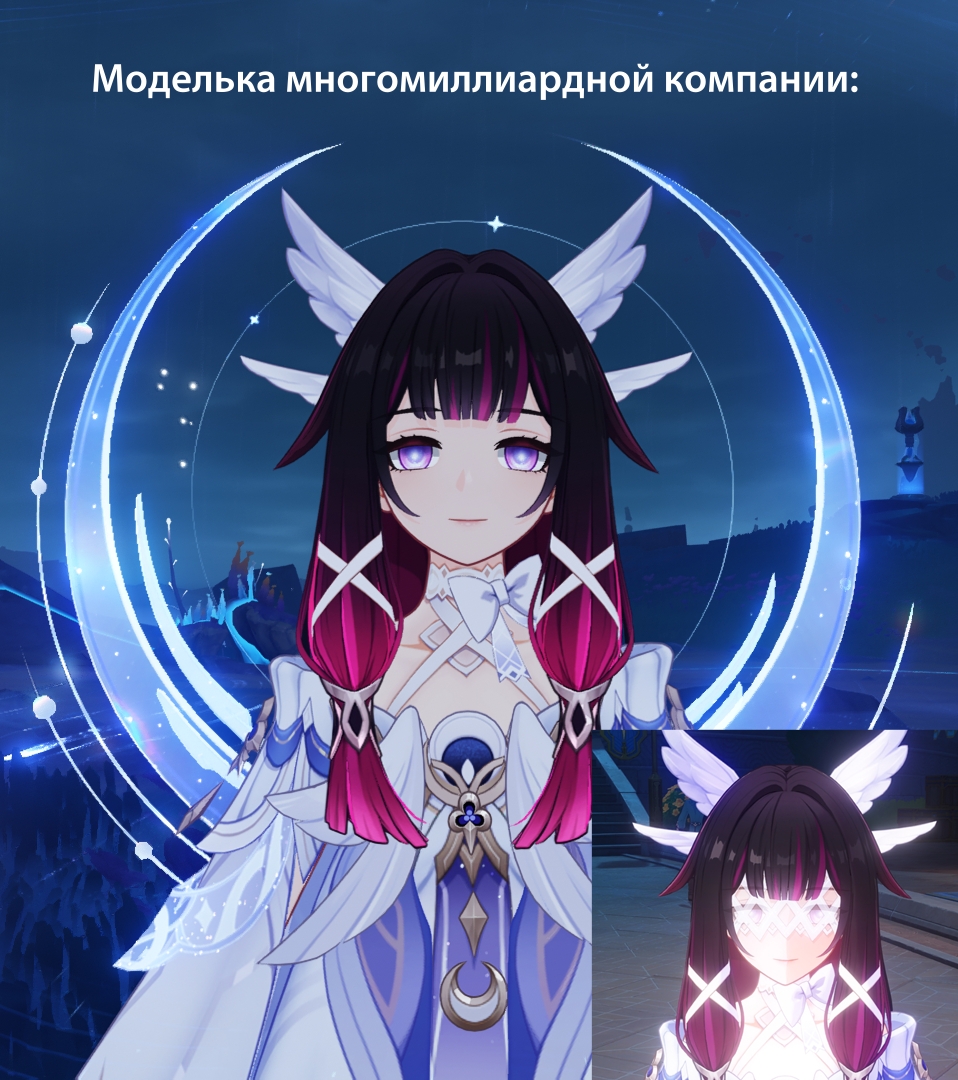 Просите, а почему я выбил вторую Кокоми, но хуже? Нет, серьезно. Посмотрите на их анимации. Давайте сейчас не будем говорить про полезность, т.к. автор ценит визуал в первую очередь, и он не гоняется за циферками. Поставьте клумбу и рыбу вместе, вы сможете определить, какой персонаж вышел раньше, а какой позже? Кокоми вышла 3 года назад, к слову. Я слишком строг? Ну уж простите, что я ожидал слишком многого от персонажа, который, во-первых – бывший предвестник, а во-вторых – местное божество по типу архонта. Естественно я вспоминала Фурину, Арлекино, у Мявуики +- красивое проработанное лицо, которое мне нравится. Посмотрите на анимации Коломбины, у нее они одинаковые почти что. Даже у Коко они более разнообразные, она крутится, переворачивается как рыба. Про лицо я уже вообще молчу, мне на него страшно смотреть. Блаженная… либо упоротая. Так и хочется сказать – поделись своей лунной травой. Разрабы, вы бы добавили больше интересных анимаций, чем заказывать миллионы артов с вайфушкой, которую вы так яро хотите продать. Куда уходит бюджет? Добавить ей уникальную анимацию бега, вот вы даете! Ах да, маленькие луны за спиной открываются с каждым новым созвездием персонажа. Хочешь добавить маленький пиксель за спиной? Доплачивай, давай, гони свой кошелёк, маленький инцеленок.