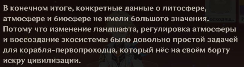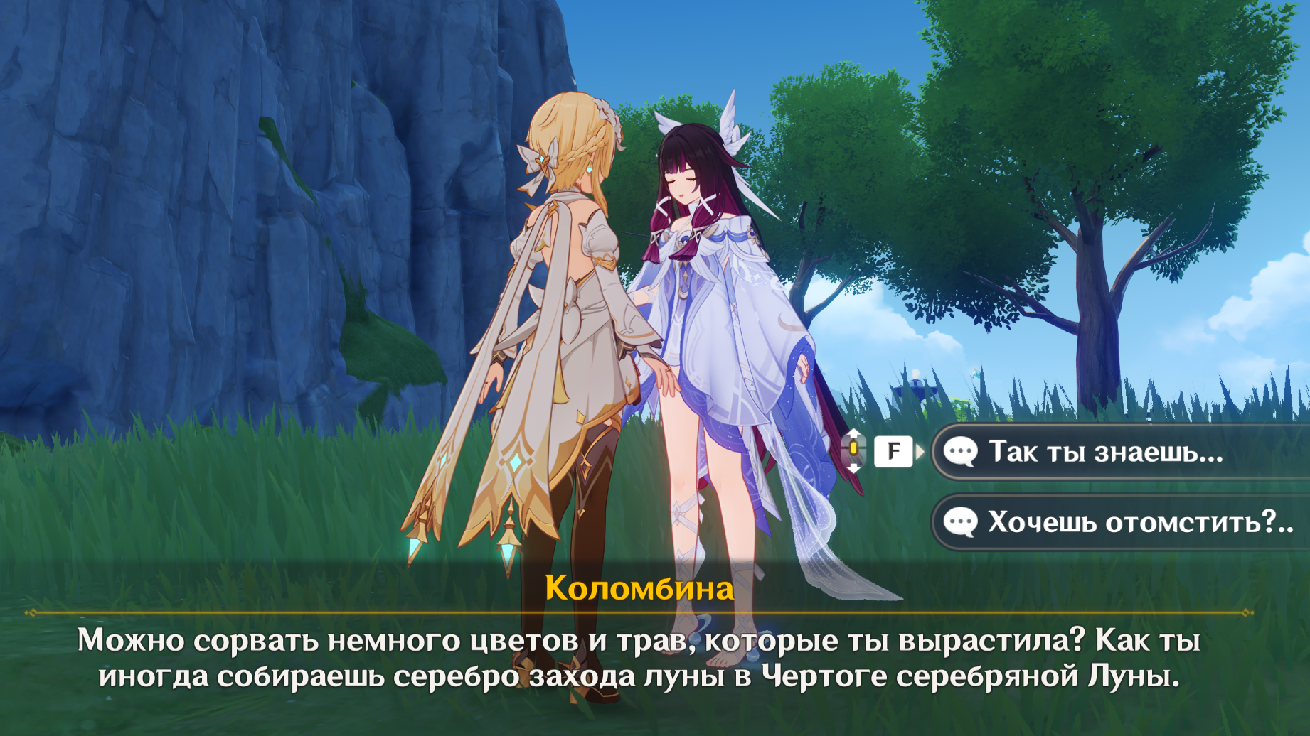 Но если посмотреть на историю, как на книгу... То у ГГ есть характер, есть некоторые принципы, цели, стремления и чувства. ЗЛ, свиданки и сюжетка, по большей части, раскрывают чемпиков. Но вот многие побочки раскрывают именно ГГ. Например в Фонтейне наша Светка - дура дурой, очень наивная: то в клетку зайдёт, то в бочку нырнёт... Но на самом деле, если посмотреть на дальнейшие события и между строк читать, она как бы просто подыгрывает, не чувствуя опасности. Потому что во многих моментах ГГ весьма проницателен, сходу подмечает разные несоответствия и порой даже тцыкает на Паймон, чтобы она не трепалась о том, что пояняли.