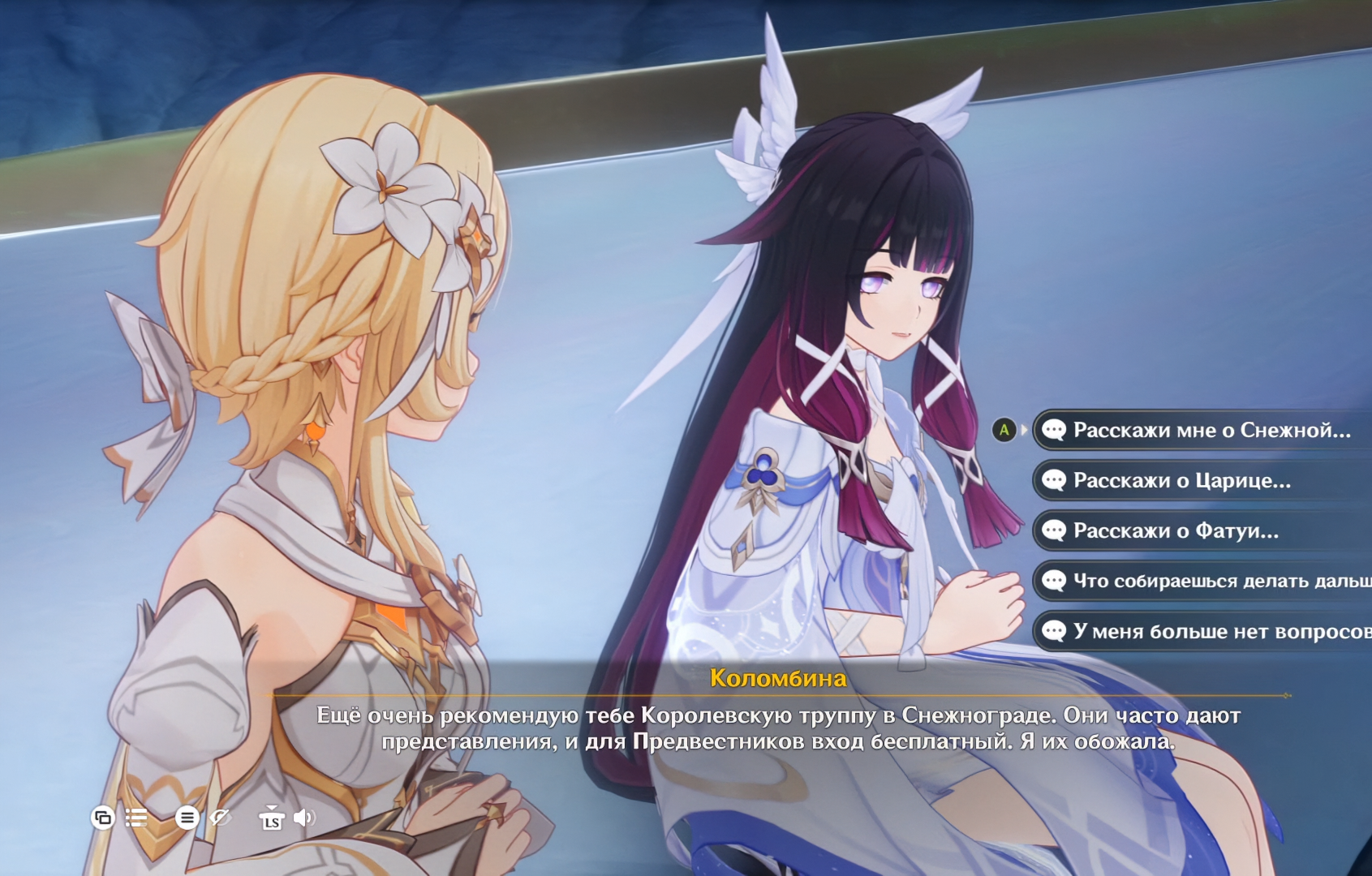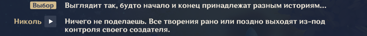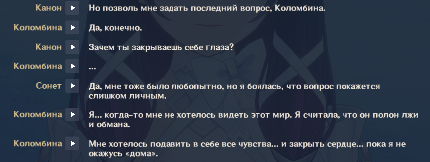 Про Николь же... Ну я о ней и не знал практически. Вообще же в игре не упоминается можно сказать. Ну мб в каких-то описаниях артов или в записочках в жопе мира, но вот чтоб так чётко в сюжете на себе внимание акцентировать - только в Фонтейне на пару диалогов и всё.