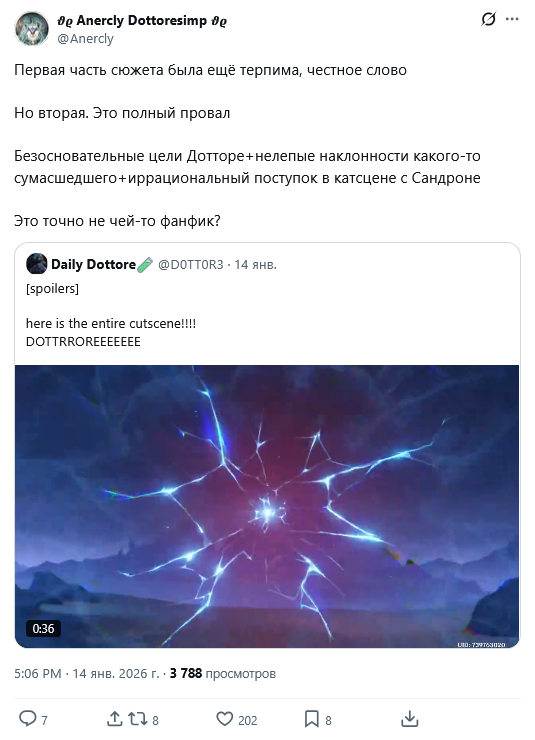 Да полная залупа. Вот если бы Варка стал богом Тейвата, было бы намного лучше. Или хотя бы Скара, он заслужил. И Доктора слили позорно, а ведь он лучший персонаж региона.