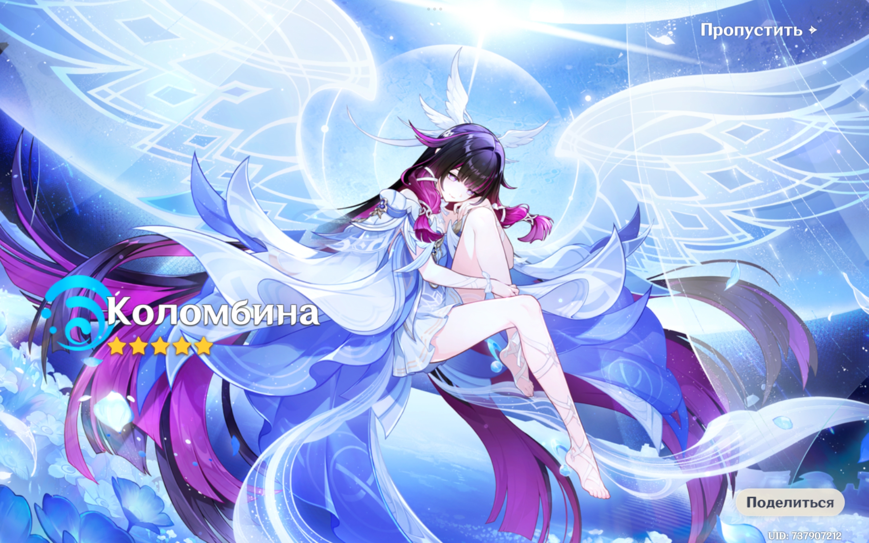 В общей сложности получается Колумбина мне обошлась в 175 круток за этот баннер... Хм, мне казалось, что я потратил больше, но да ладно. Не знаю зачем, но вроде остальные тоже пишут эту инфу. (Алсо, возможно, что это ещё не предел и я покидаюсь ещё крутками, так что в Колумбине возможны изменения)