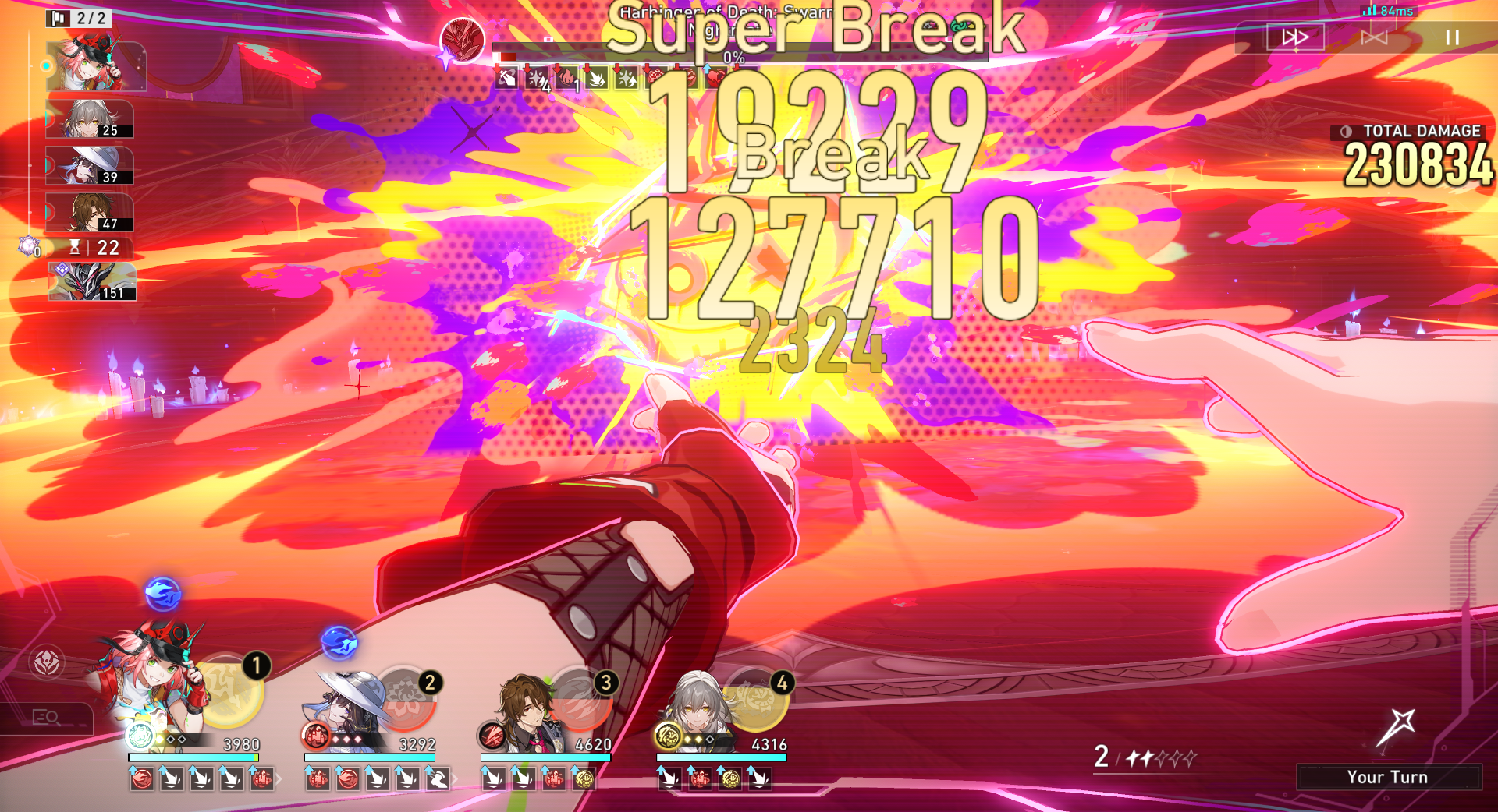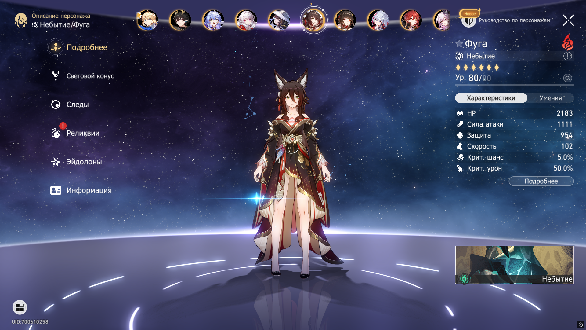 Релики должны быть 4pc Pioneer (лучше всего для follow-up) или Watchmaker, с критами 60/180+, спид 134+, ATK% в субах. LC её же сигну S1 ок, но Eternal Calculus S5 имба. Команда: Пела + броня для break efficiency, или Люк/Блэки для дебаффов.