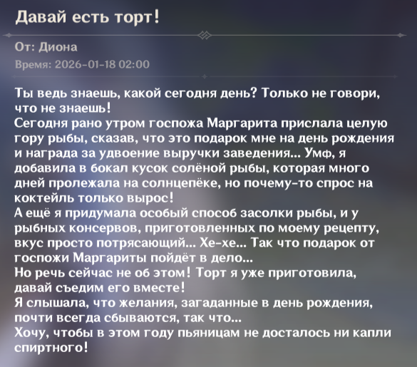 И про то, как ему похуй на то, что паймон всех заебала, и как конца у игры не будет и мы будем вечно делать дейлики за 10 гемов и 1000 моры каждый день