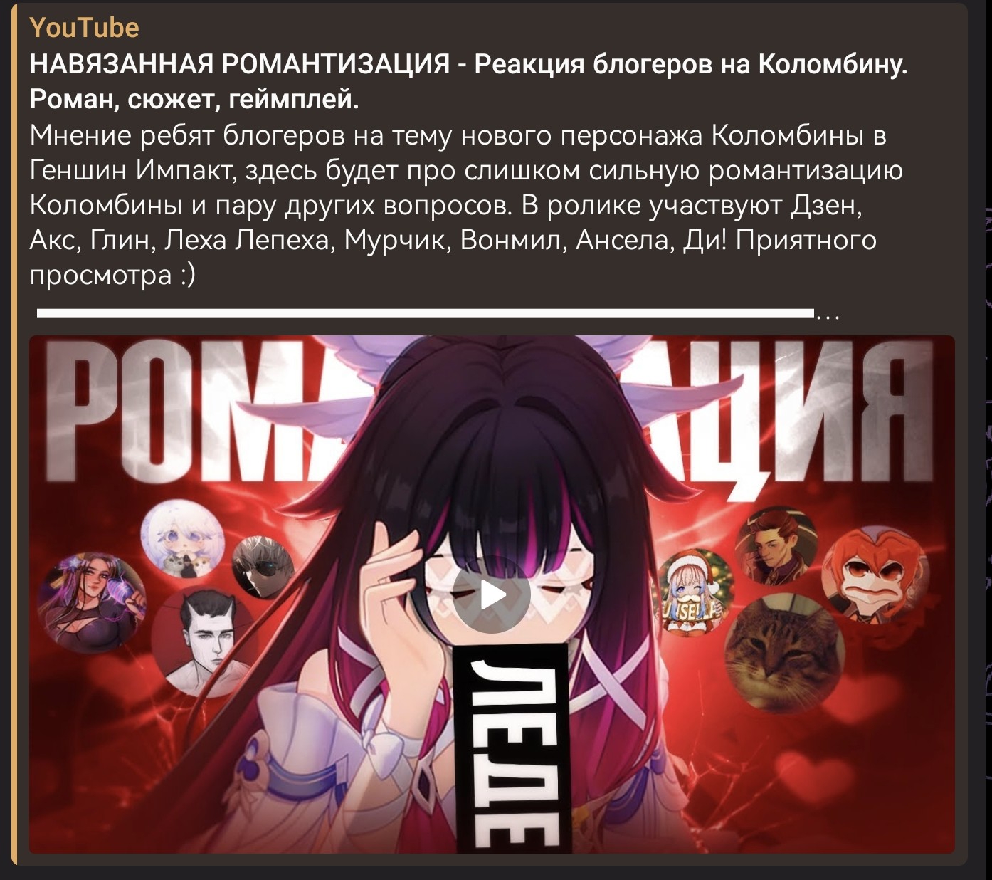 Тизеры в конце норм, ждём транссиб, города пачки, заводы, механику холода. Должен быть Большой с балетом. Варка тизернул локи Монда. Николь тизернула, что в этом году летний эвент будет вокруг Алисы крутиться. Дочке небось устроит праздник. Ну и финальный тизер, что сраный Дотторе не сдох, кто бы сомневался.