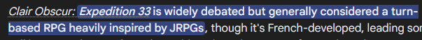 >>6232017 жрпг это термин западной культуры, да до сих пор дохуя кто спорит что называть жрпг а что нет, самое нормальное определение у которого есть рамки это пошаговый старый кал. либо ты используешь это определение просто для описания того из какого региона эта игра и это выкидывает игры которые например под геймплейное определение подходят, но добавляет игры которые просто по сути те же знакомые западные рпг. и во всех этих спорах ни разу не использовался аргумент про какую-то аниме эстетику, я его впервые сейчас в треде увидел лол