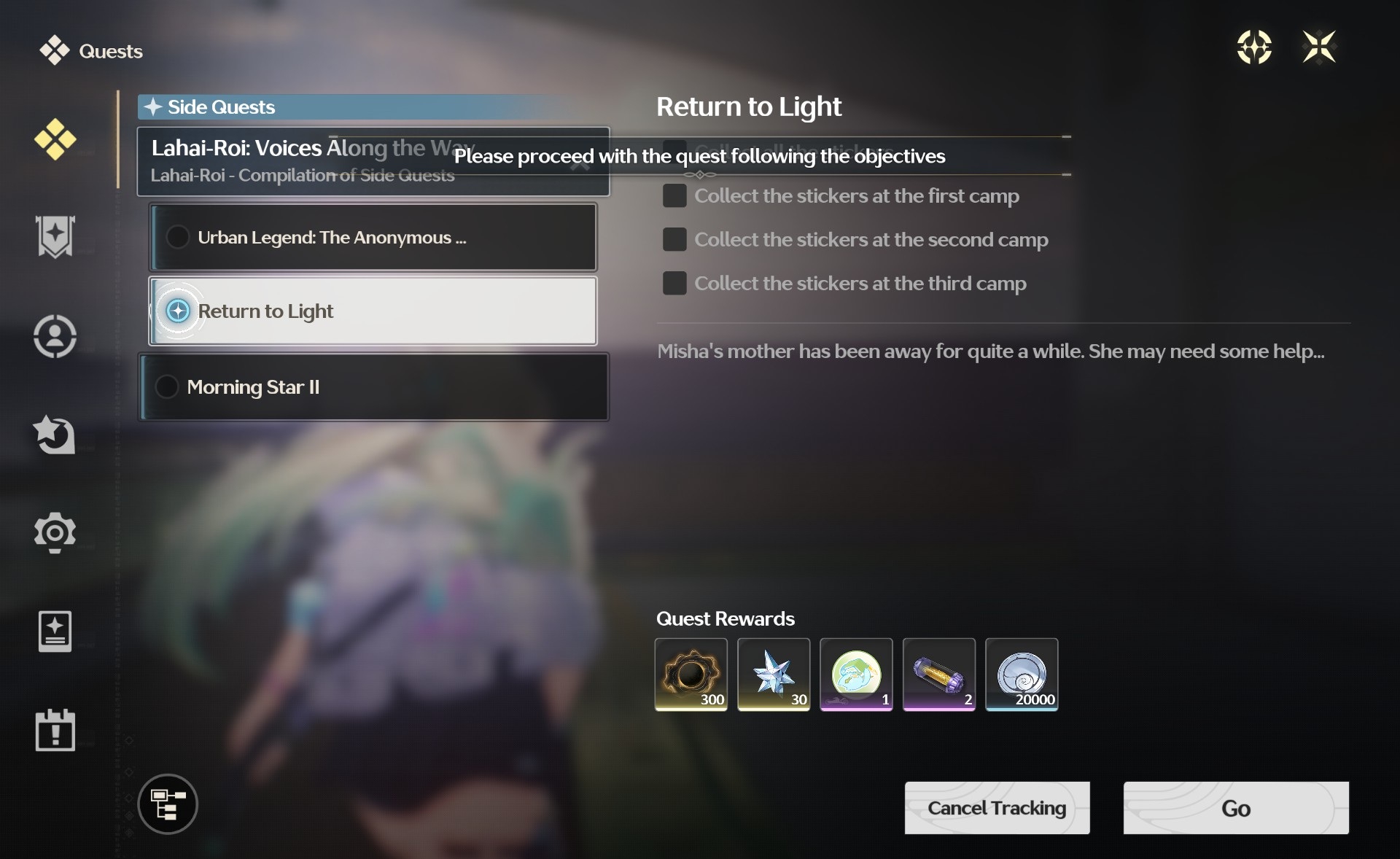 Вуваны, нужна помощь. Решил пройтись по всем квестикам, и столкнулся с такой вот неприятной ситуацией. Локацию квеста не показывает, выдает конфликт заданий. Самое интересное что стикеры в первом лагере я уже собирал пару дней назад. Да и сегодня вернувшись по гайдам в первый лагерь, какие либо кнопки взаимодействия отсутствовали. Квест намертво повис и тут только в поддержку куро писать ? Плюсом ко всему этому, такая же херня с заданием Urban Legend, но там, я подозреваю, что нужно какие то особенные условия для получения пятого квеста из цепочки .