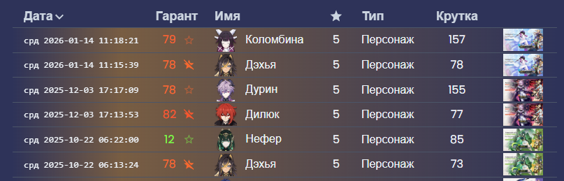 ✦ Гача-калькулятор https://hutaobot.moe/tools/gachacalc ✦ Показать персонажей картинкой https://akasha.cv/ ∙ https://enka.network/