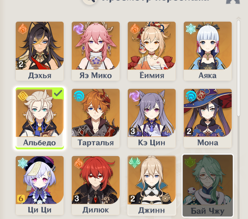У меня самого Клумбы нет, но есть Лабуба, так что могу только предположить что-то. Например Нахида+Диона/Куки, можно ЯоЯо, если Нахиды нет.