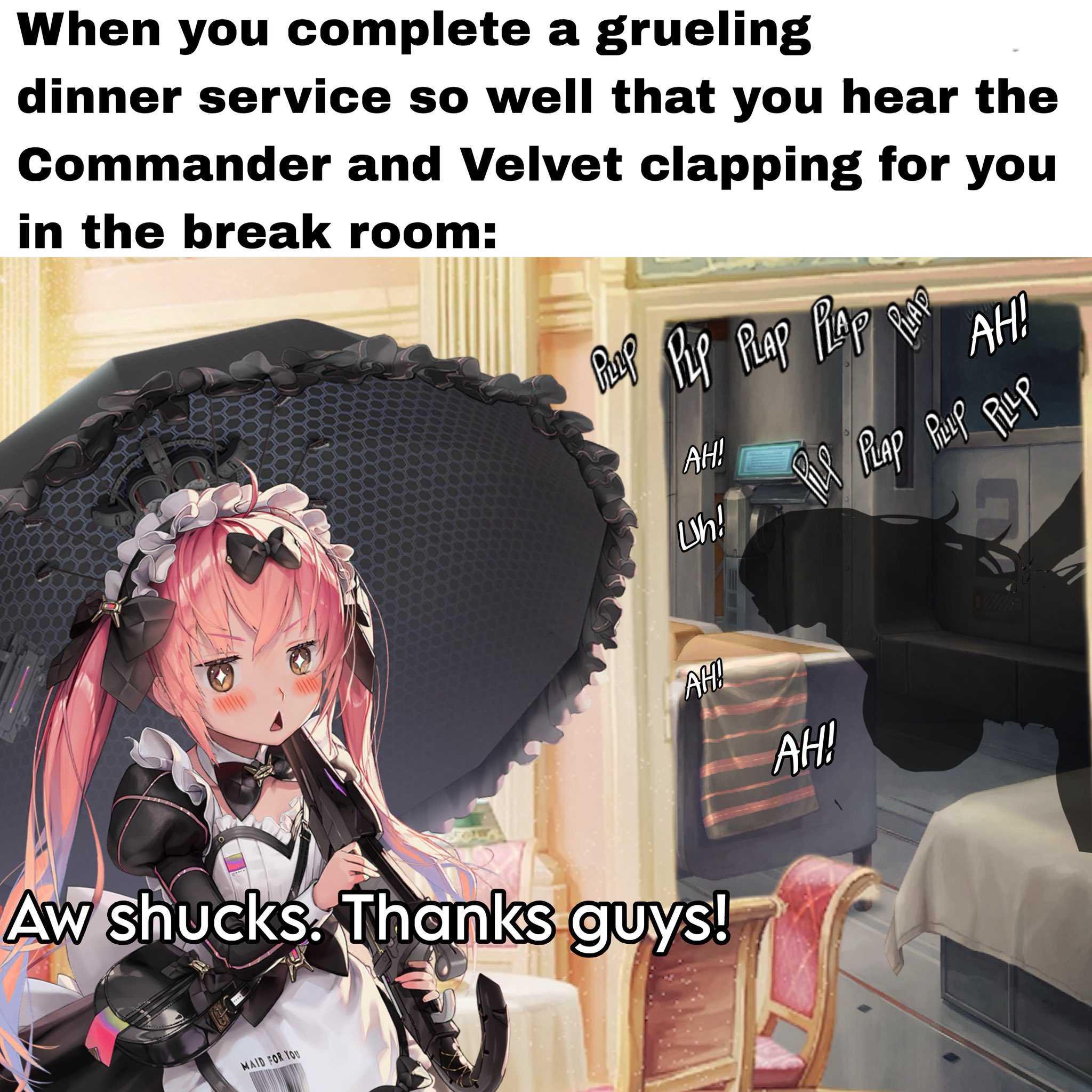 Тред ожидания новых мейд. Ким молчит, а мы изнываем без новостей. Готовим с Какавой и Маст напитки и блюда, убираемся Содой и Привати, обслуживаем посетителей с Аде и Анкор.