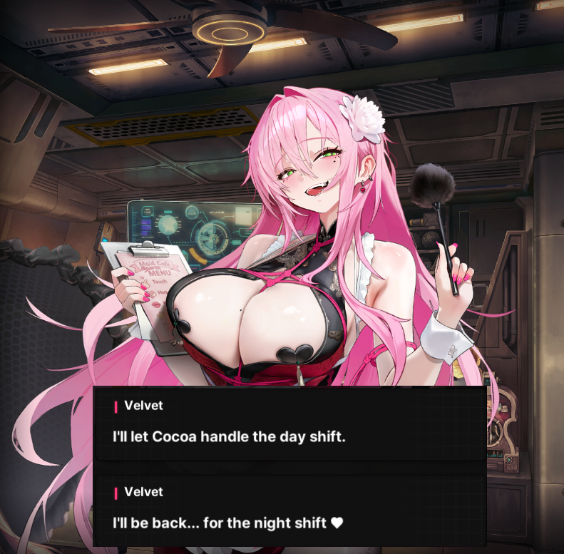 Бля, они теперь эту хуйню с заглушками на сосках в покое не оставят. Ну тут оно хотя бы более-менее адекватно в контексте персонажа выглядит, хотя все равно вульгарная безвкусица. И я, разумеется, в жизнь не поверю, что Какава у себя в кафе такое бы устроила.