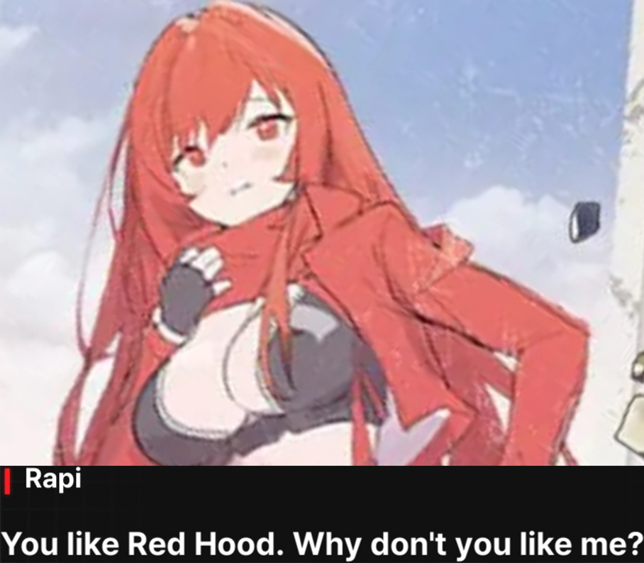 >>6366725 Рапи украла самое главное: сердечко нашего Рапишиза. А так спокойно гунил бы на мейдочек или кролей >>6367438 Правильно пишет. Ориг Рапи потеряла ту небольшую часть своей идентичности, что у неё была