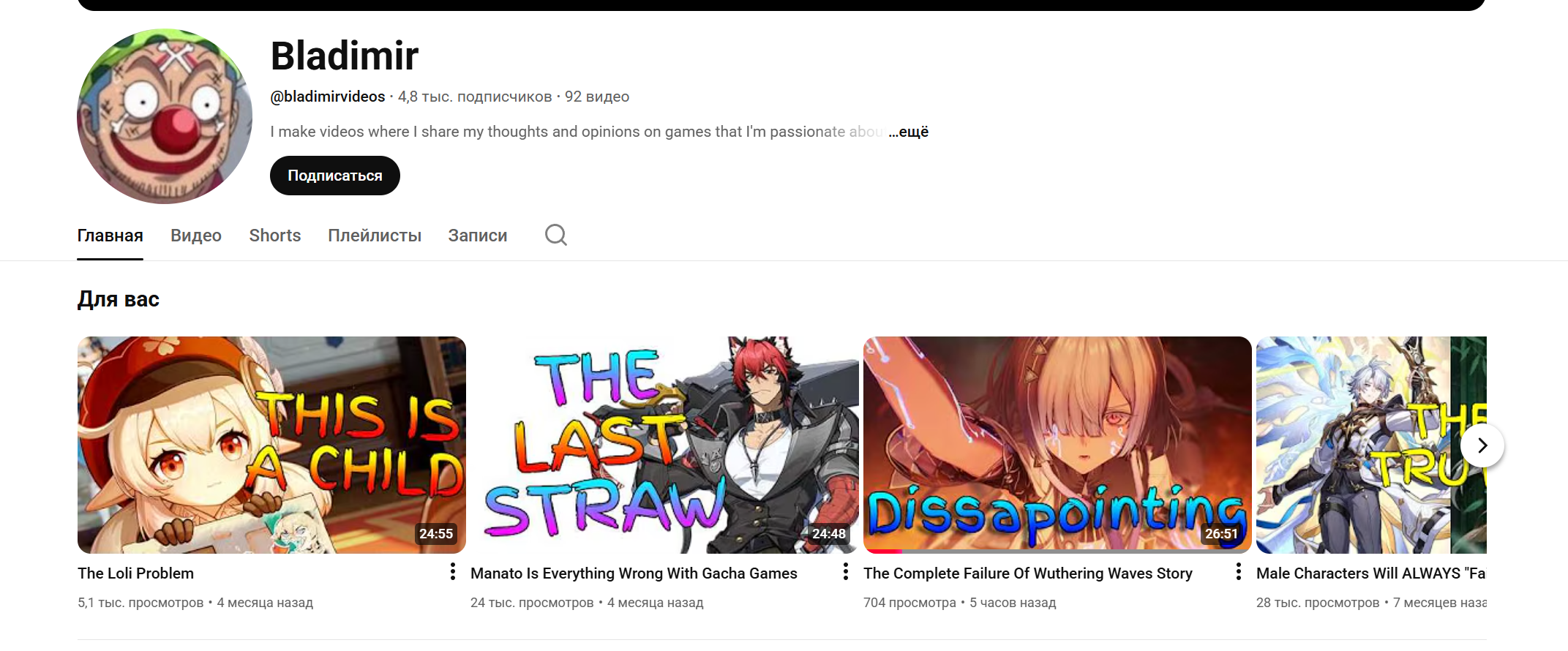 >>6274817 Ты не туда смотришь. Ее шоукес - один из самых залайканых. 95к лайков - я больше видел только у специального видео картефии(115к) причем у шоукейса картохи всего 60к где-то лайков.