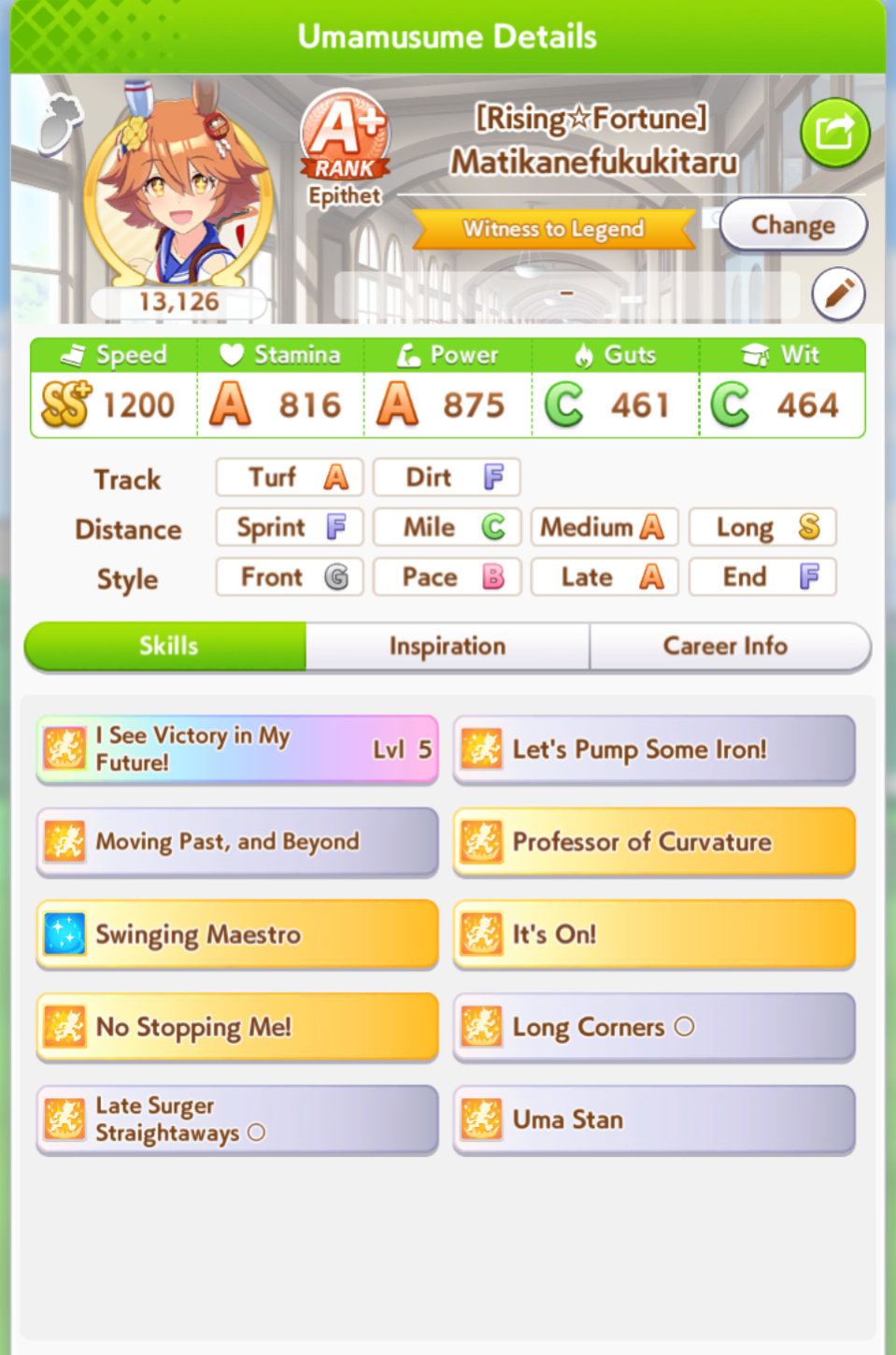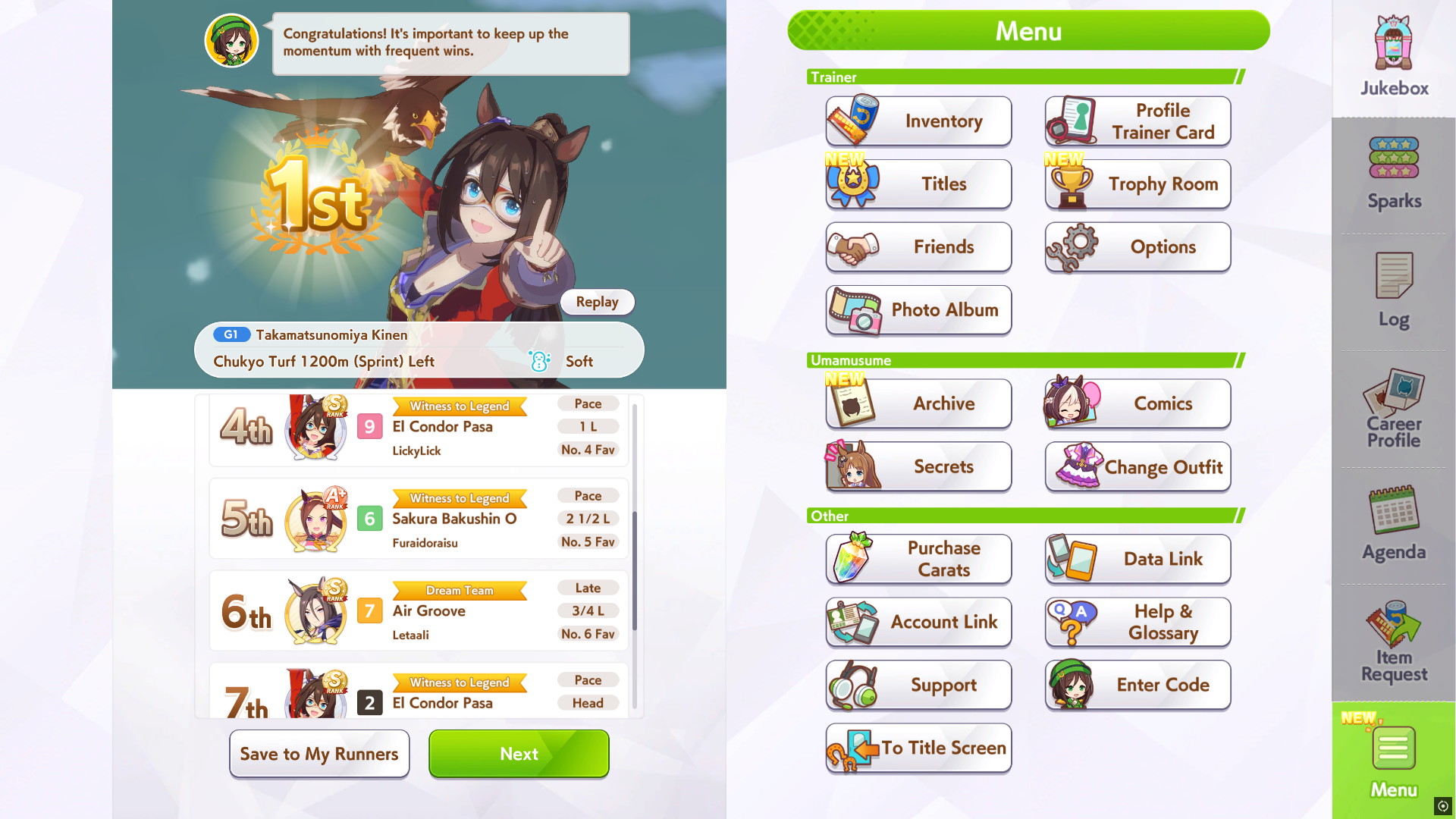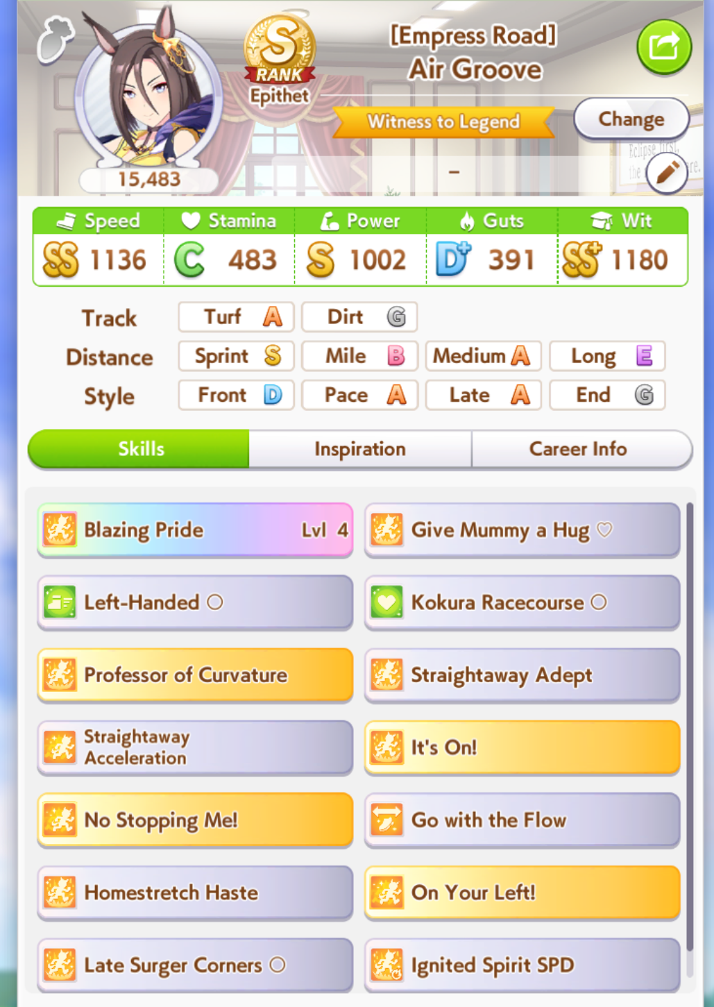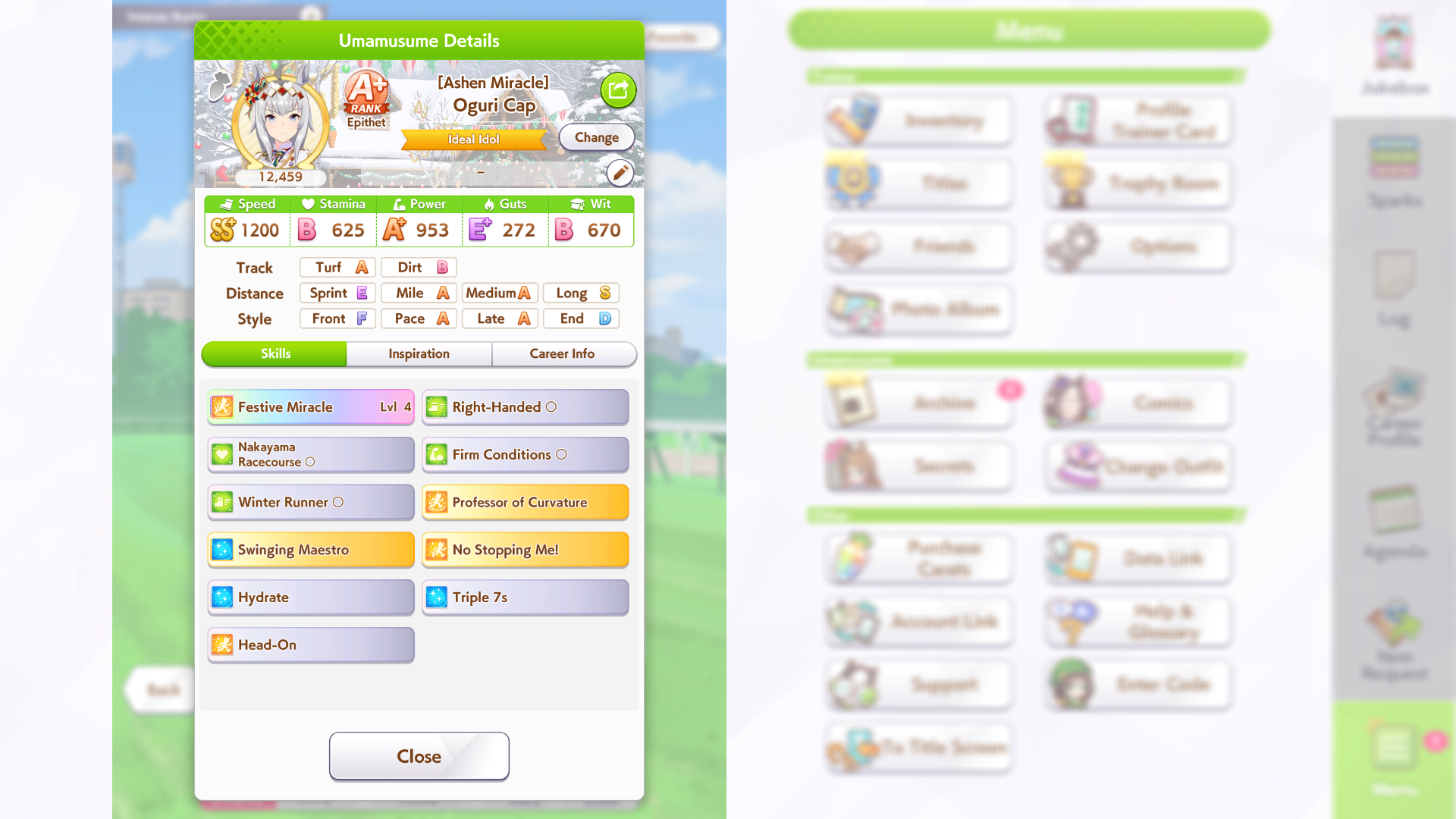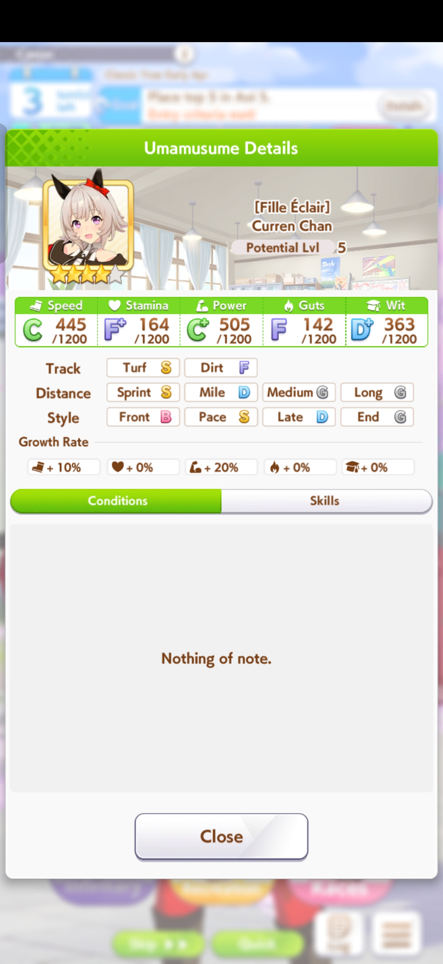 Первое впечатление от карьеры - лёгкая и чилловая. Не знаю как будет дальше, но даже несмотря на противное задание как у Огури а-ля: Выиграй в топ 3 столько то гонок, что принуждает тебя тратить ходы она и Юнити выиграла А ранговой тимой и сама вырывалась вперёд всегда под конец. Ума стан и S не упали и ладно, я и не думал что успею на этот турик её сделать