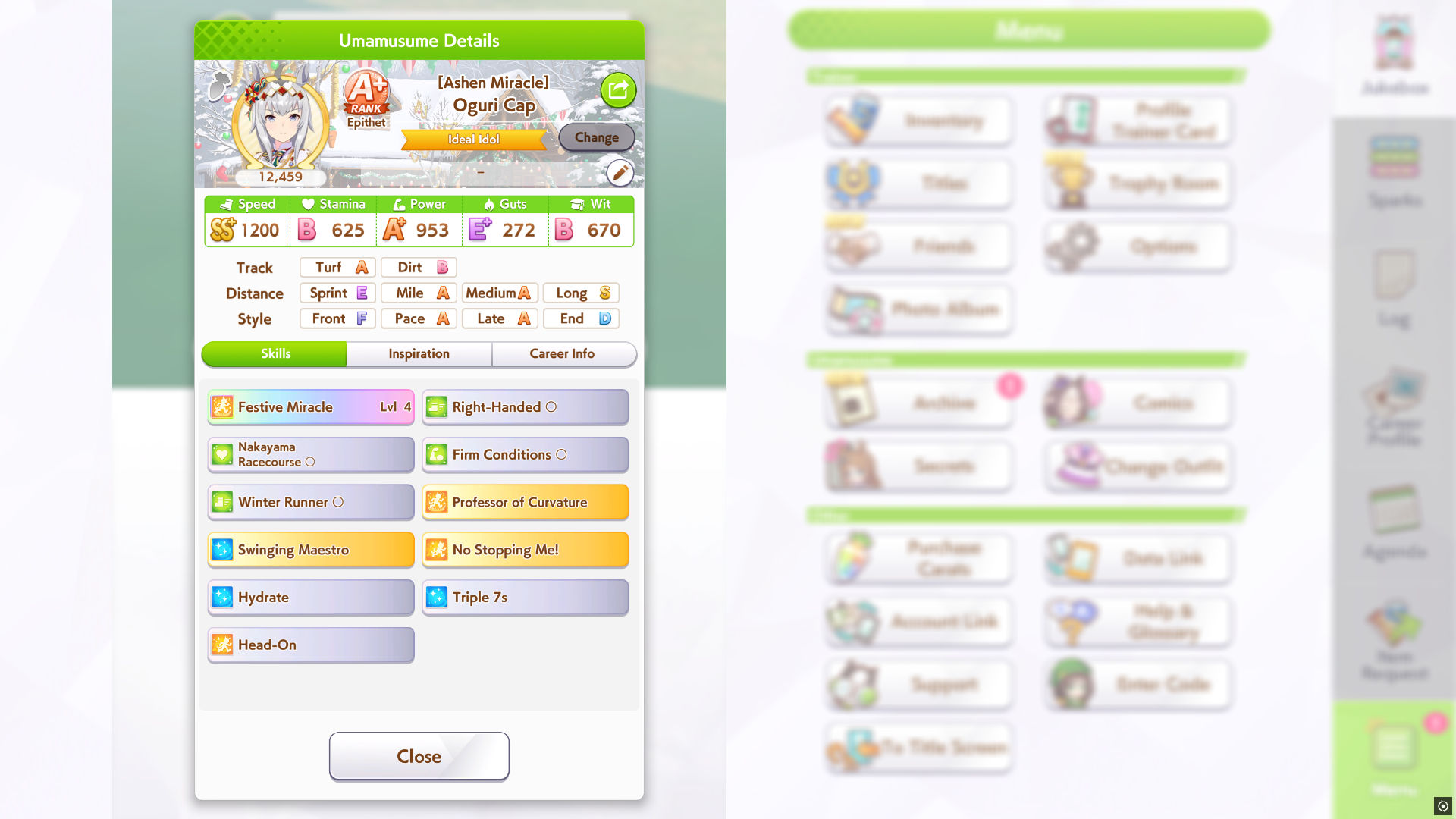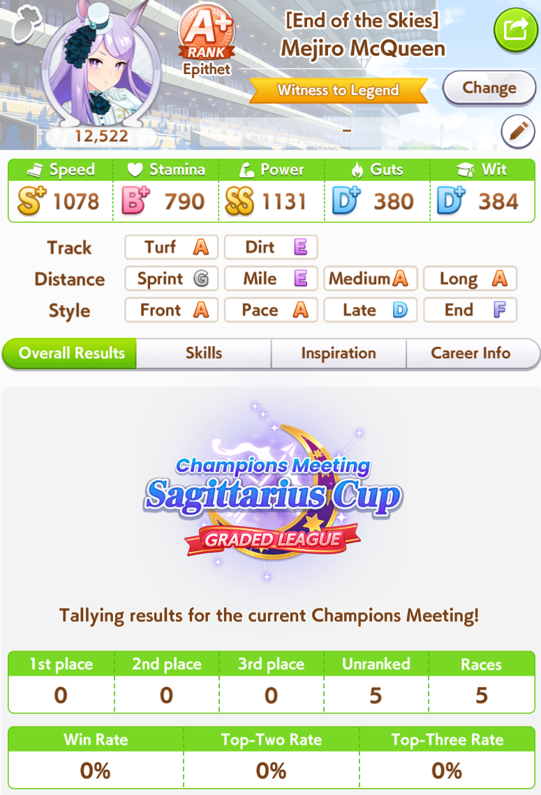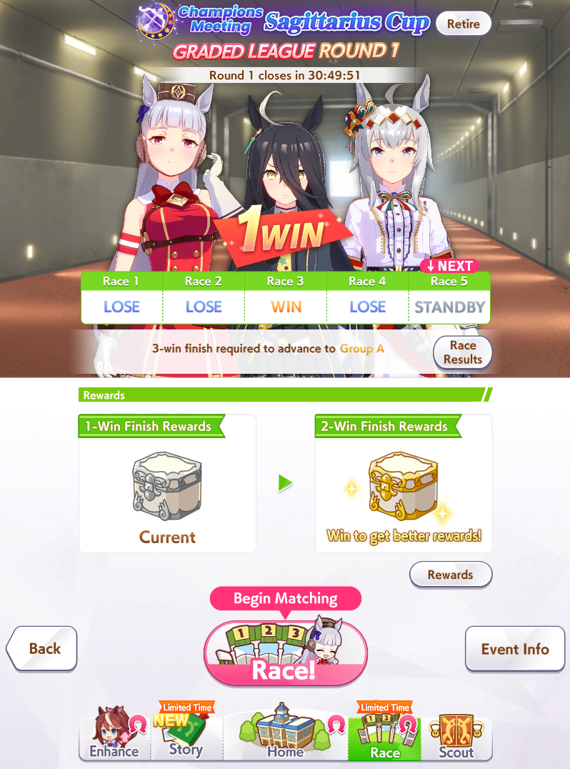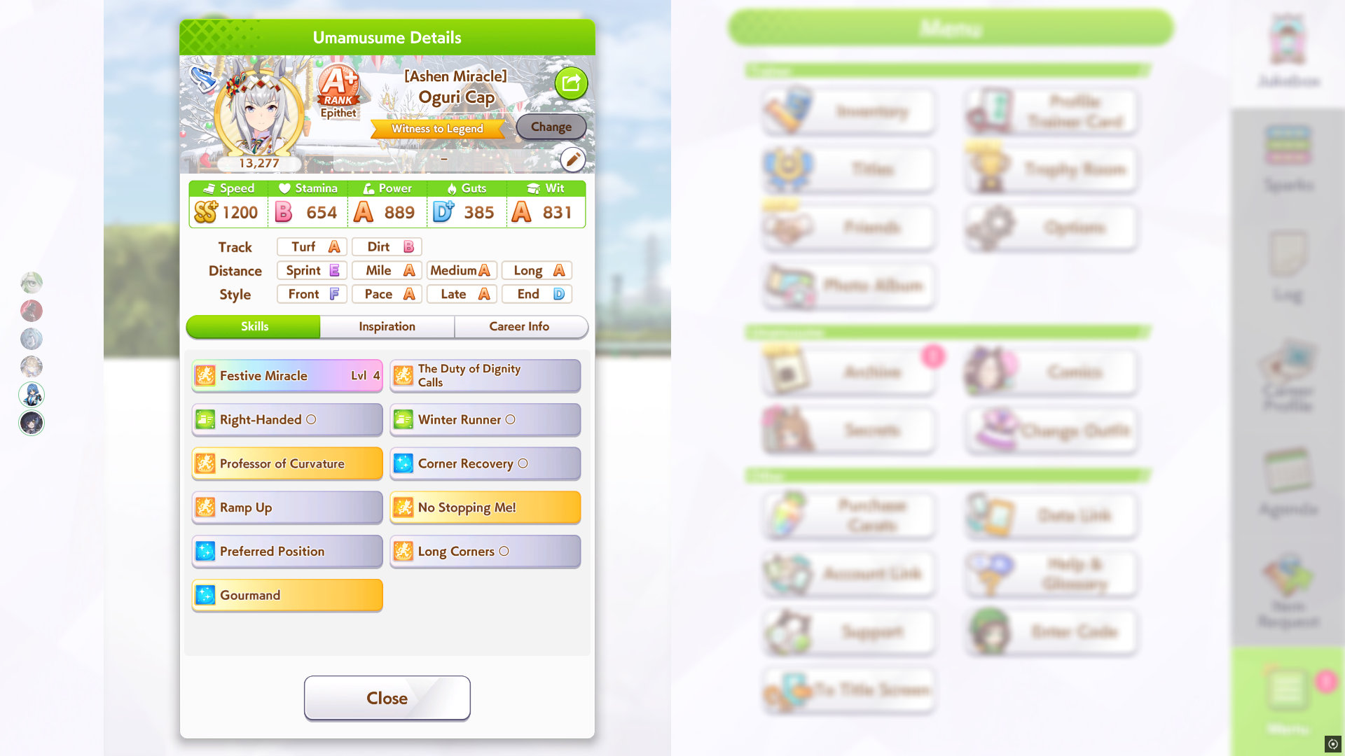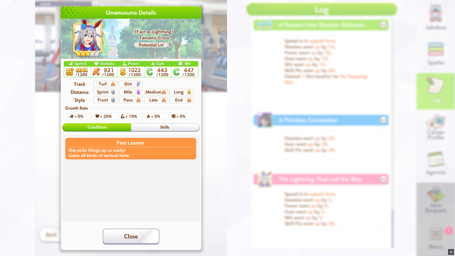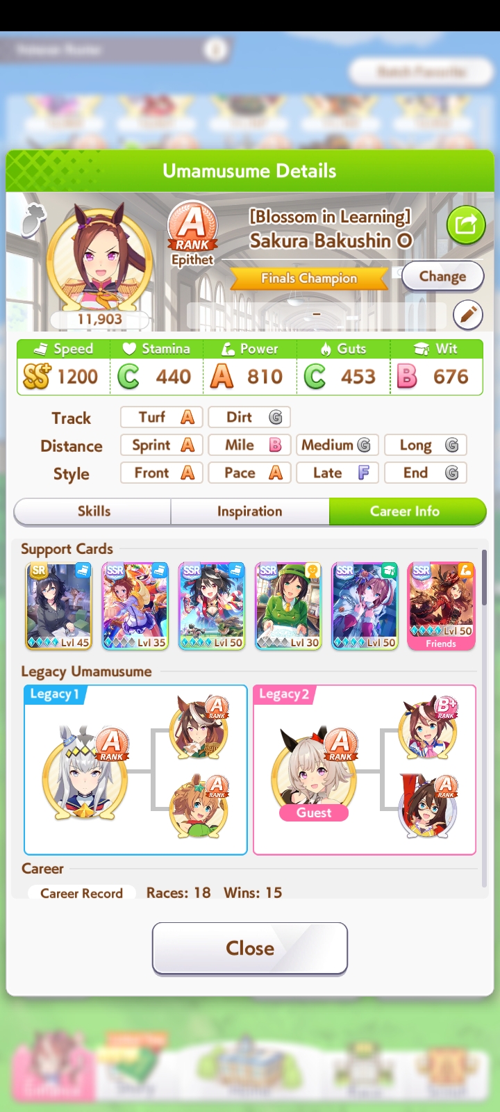 Первое впечатление от карьеры - лёгкая и чилловая. Не знаю как будет дальше, но даже несмотря на противное задание как у Огури а-ля: Выиграй в топ 3 столько то гонок, что принуждает тебя тратить ходы она и Юнити выиграла А ранговой тимой и сама вырывалась вперёд всегда под конец. Ума стан и S не упали и ладно, я и не думал что успею на этот турик её сделать