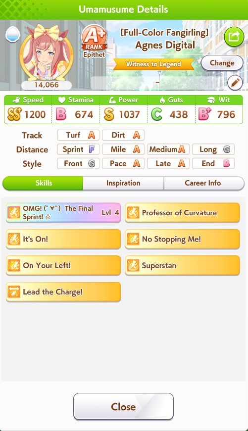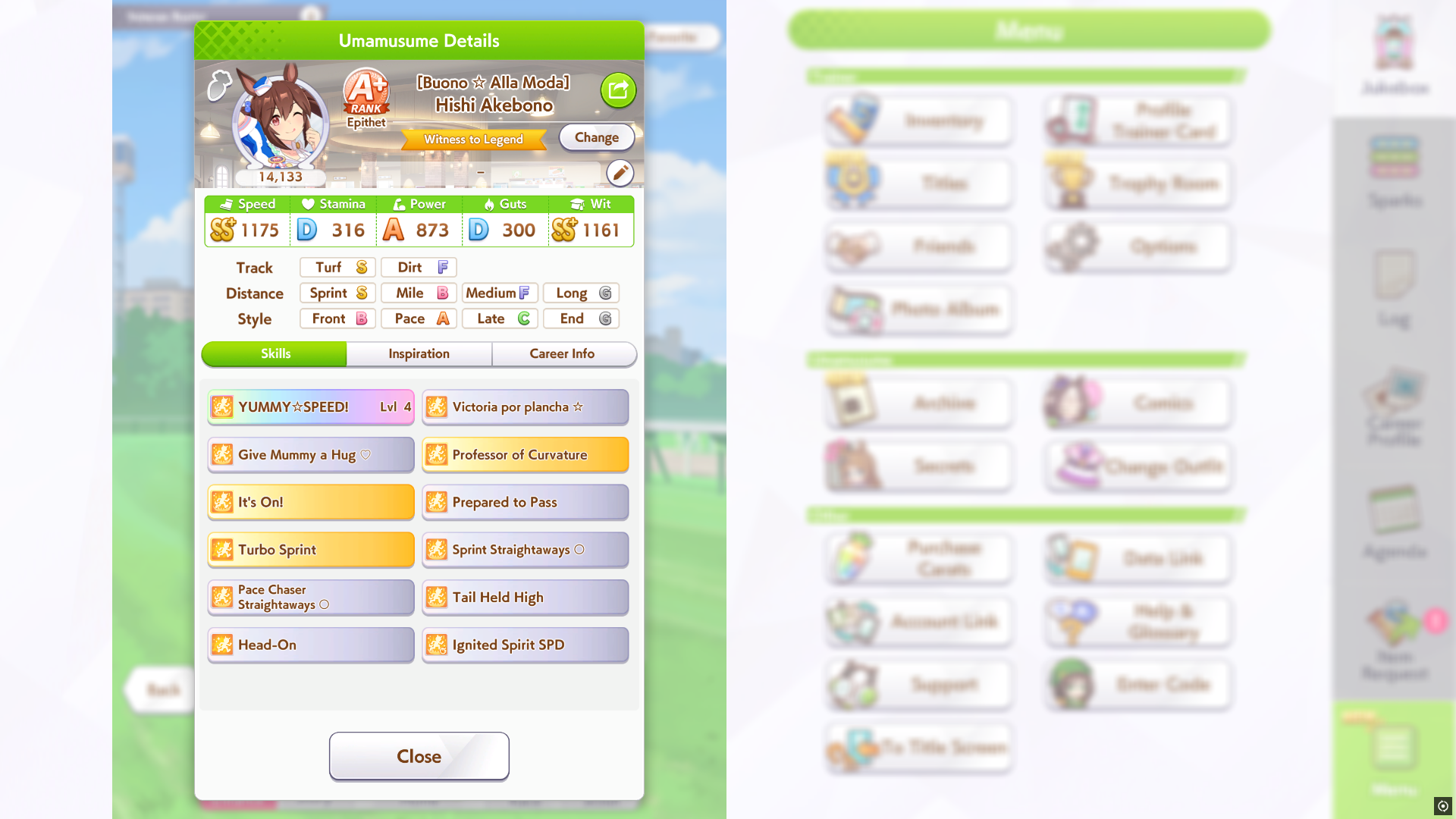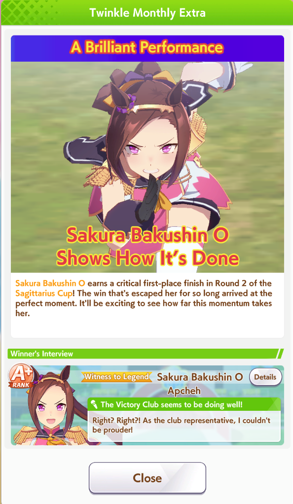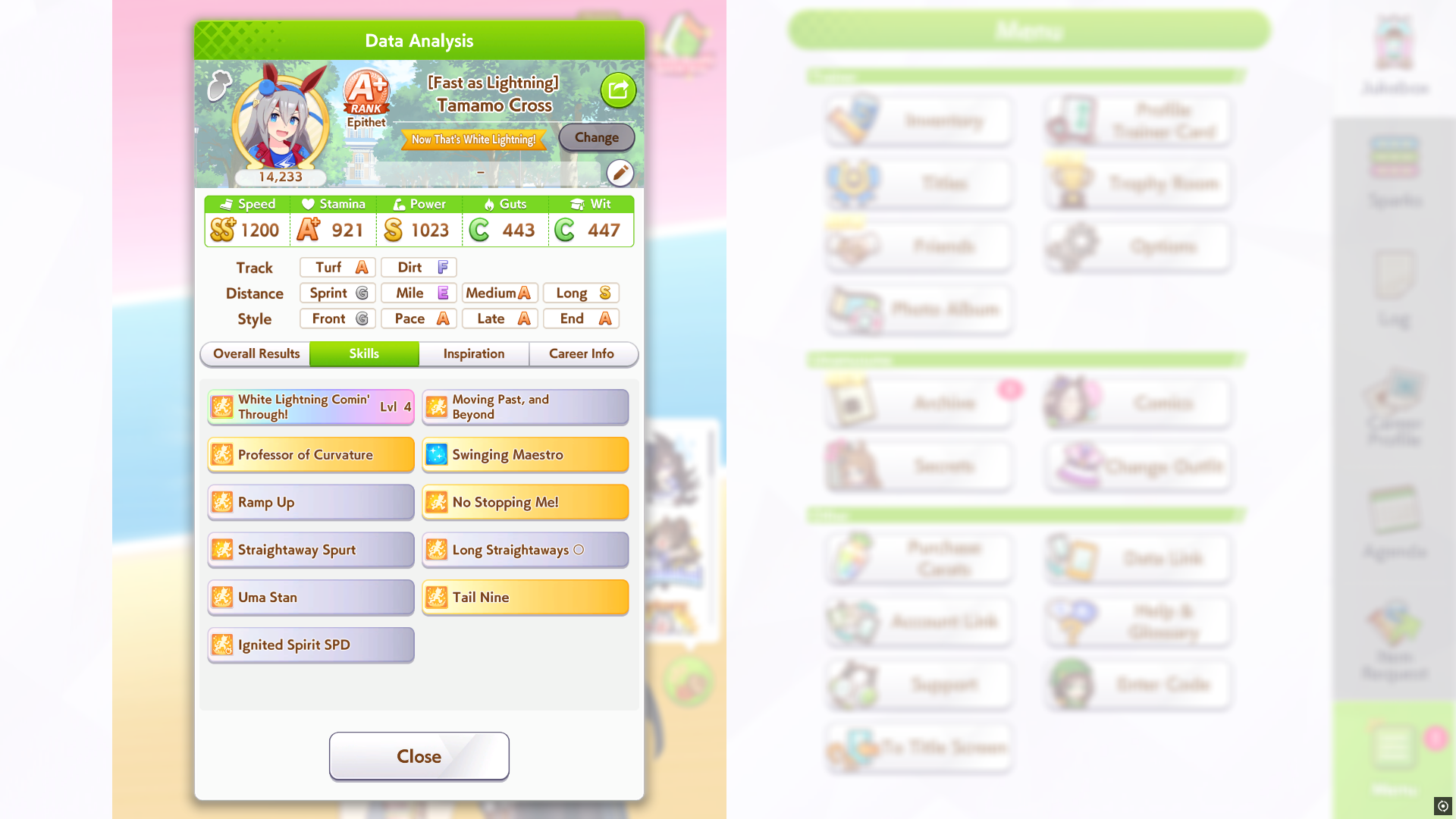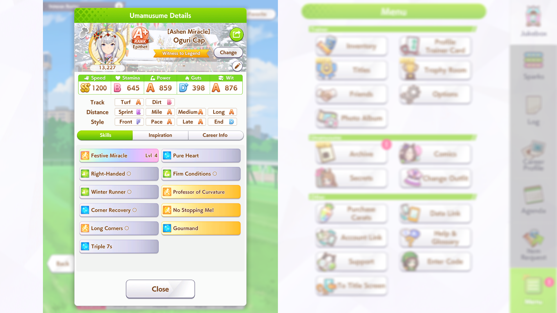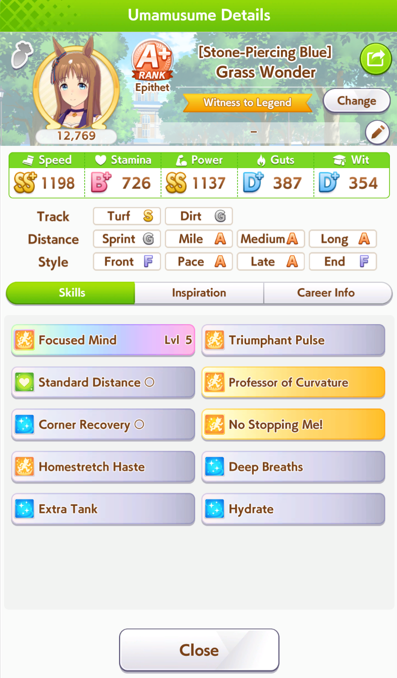 Первое впечатление от карьеры - лёгкая и чилловая. Не знаю как будет дальше, но даже несмотря на противное задание как у Огури а-ля: Выиграй в топ 3 столько то гонок, что принуждает тебя тратить ходы она и Юнити выиграла А ранговой тимой и сама вырывалась вперёд всегда под конец. Ума стан и S не упали и ладно, я и не думал что успею на этот турик её сделать